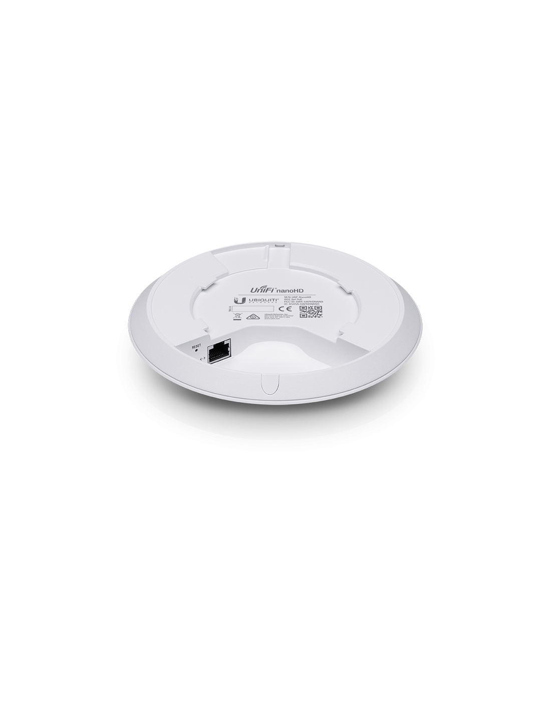Ubiquiti UniFi nanoHD. Velocità massima di trasferimento dati: 1733 Mbit/s, Velocità trasferimento Ethernet LAN: 10,100,1000 Mbit/s, Tasso di trasmissione dati: 1733 Mbit/s. Algoritmi di sicurezza supportati: AES, TKIP, WEP, WPA, WPA-Enterprise, WPA-PSK, WPA2, Funzioni SSID (Service Set Identifier): Attivazione/disattivazione della trasmissione SSID. Tensione di ingresso AC: 44 - 57 V, Consumi: 10,5 W. Installazione: Soffitto, Parete, Colore del prodotto: Bianco, Certificazione: CE, FCC, IC. Caratteristiche dell'antenna: Antenna integrata, Livello di guadagno dell'antenna (max): 3 dBi