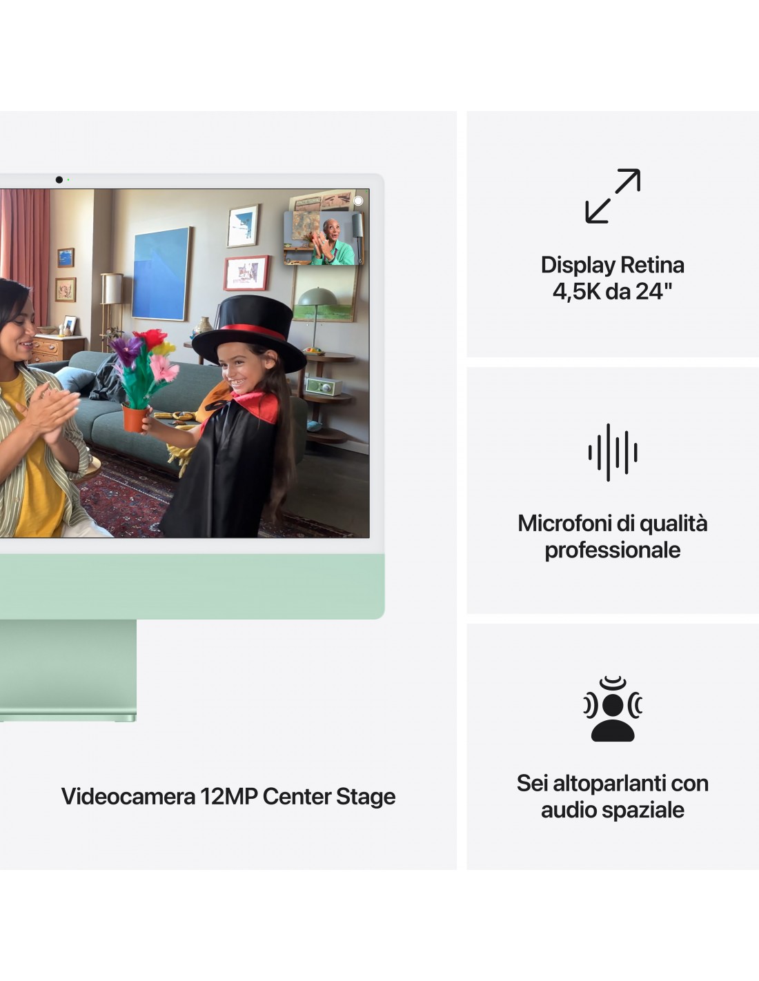 • DISPLAY SPETTACOLARE - Il display Retina 4,5K da 24"[1] ha 500 nit di luminosità e supporta fino a un miliardo di colori.