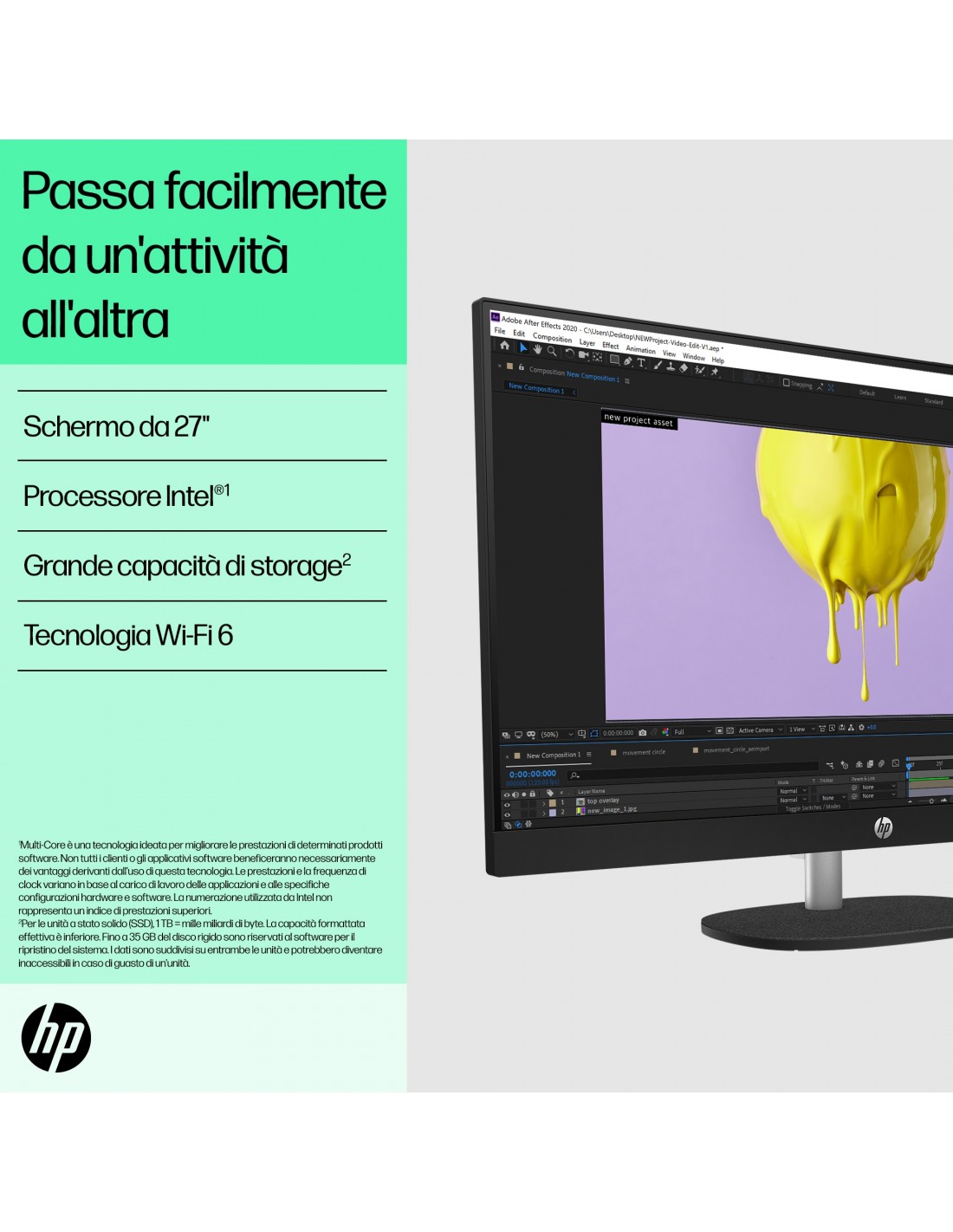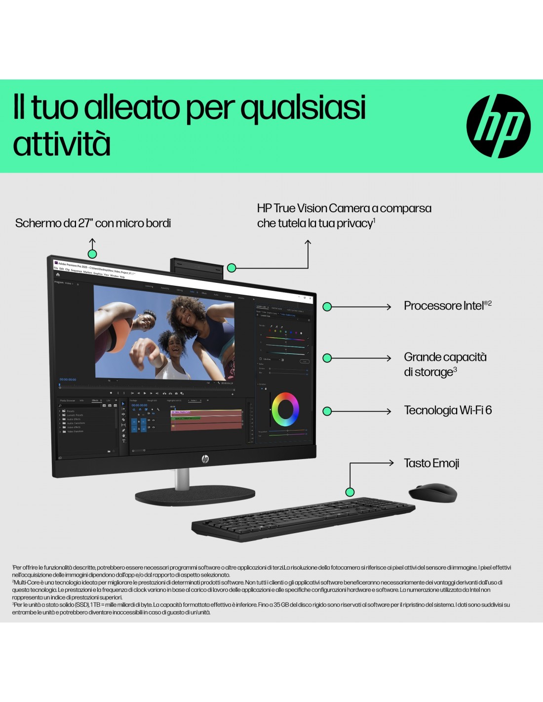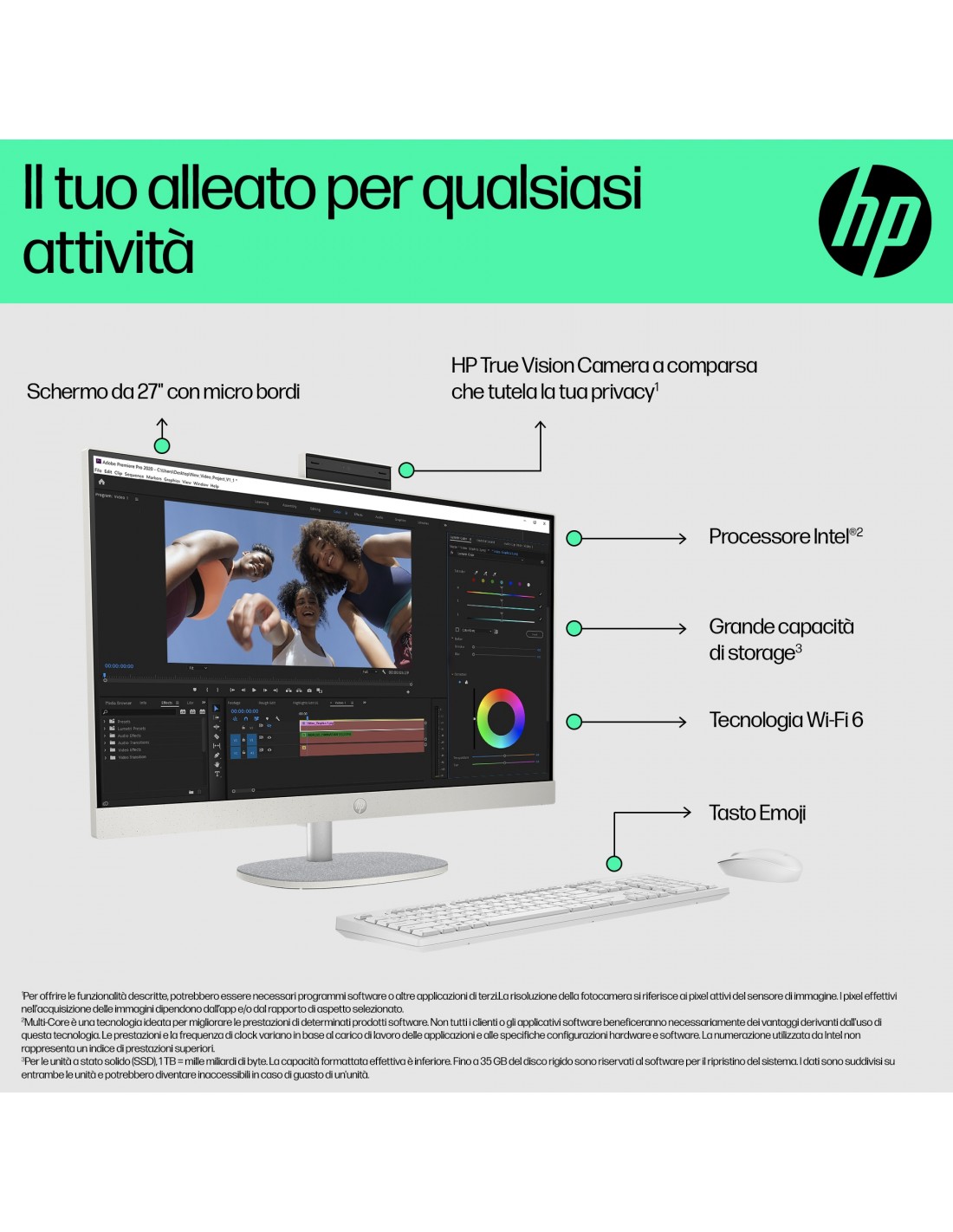 Il PC desktop HP 27" All-in-One ti consente di fare di più con meno. Realizzato in modo responsabile con plastica riciclata post-consumo e plastica potenzialmente destinata agli oceani[1], accompagnato da registrazione EPEAT Gold e dotato di certificazione ENERGY STAR[2]. Con un potente processore, memoria di livello superiore e funzionalità multitasking potenziate, le prestazioni saranno sempre elevate, senza compromessi.