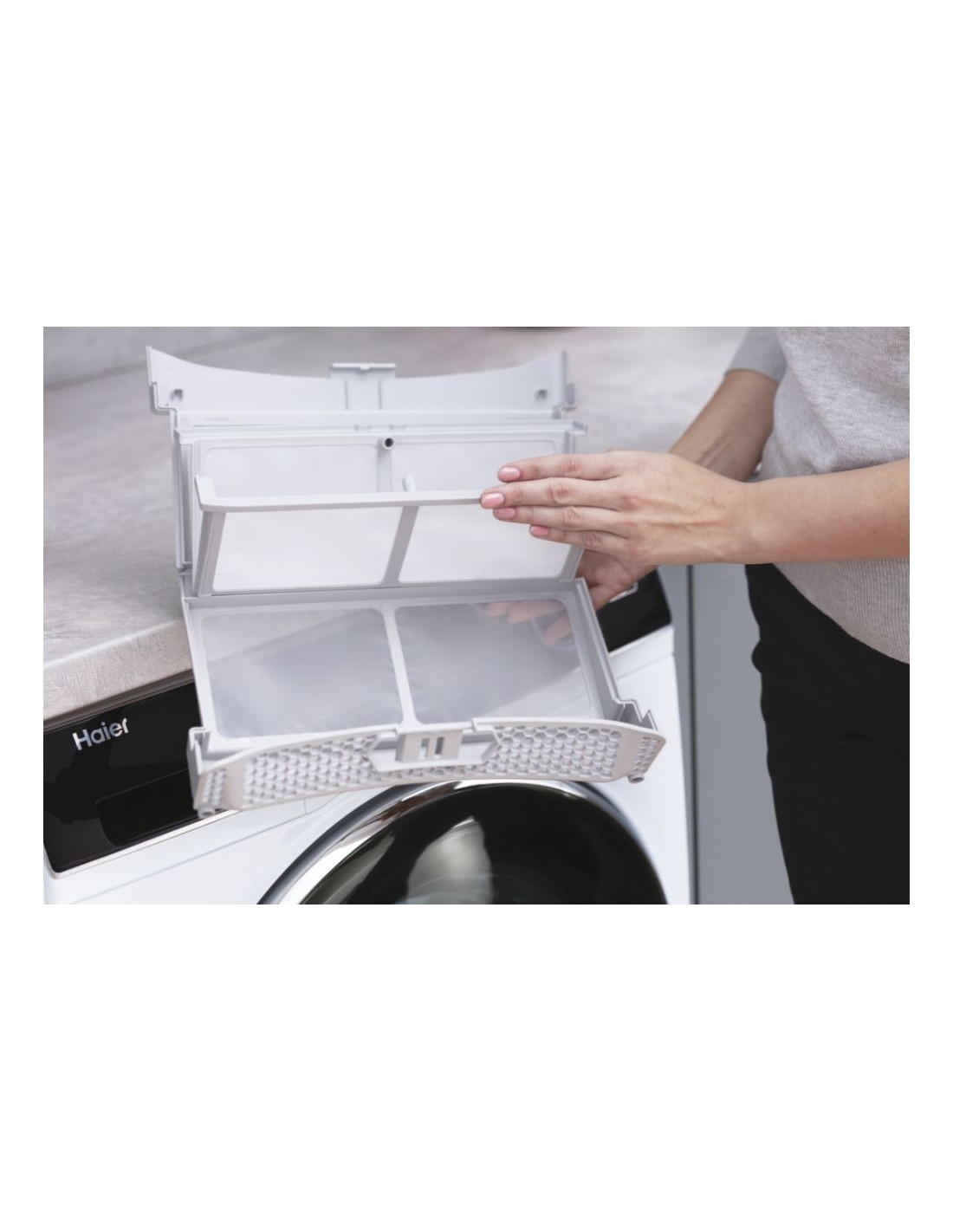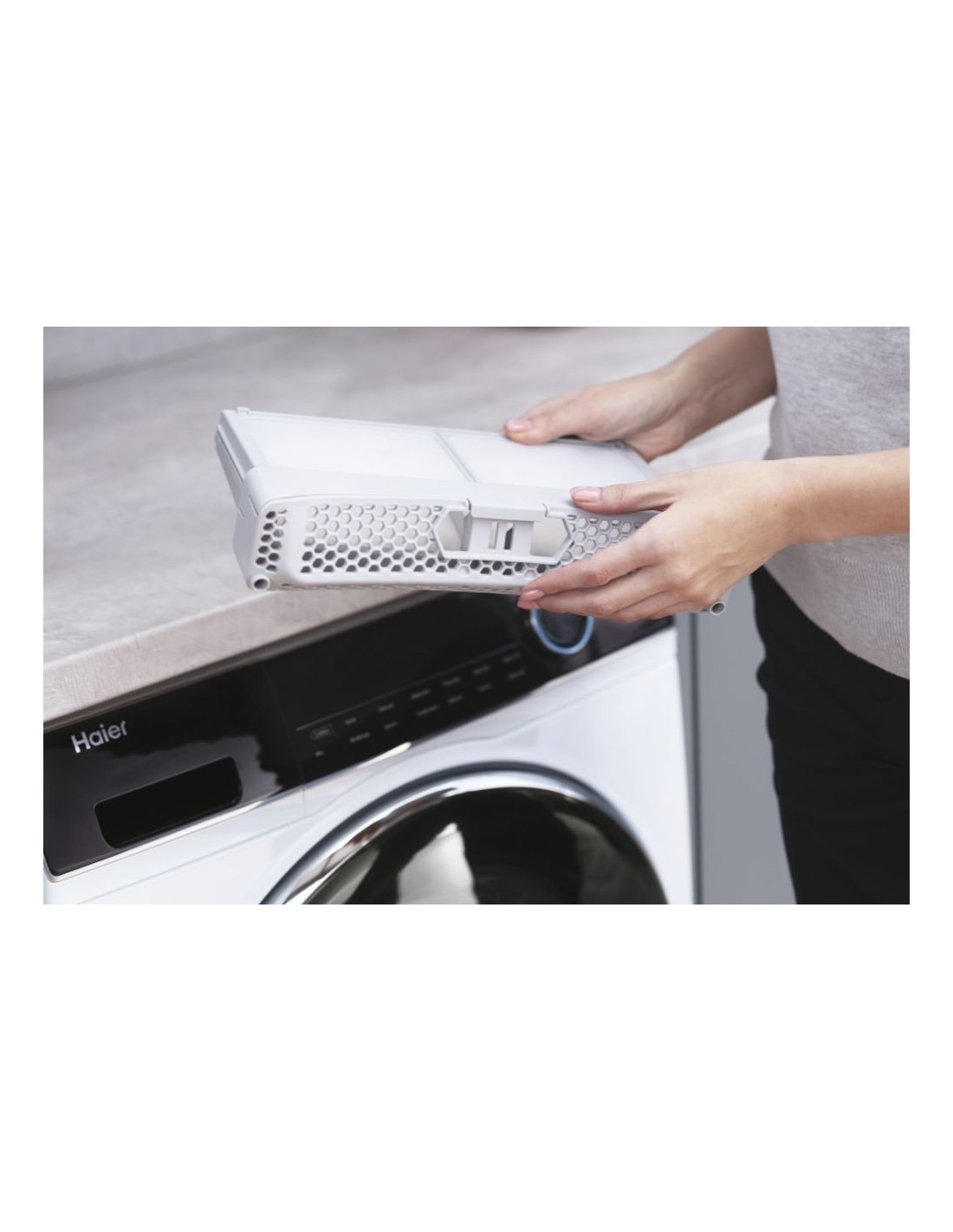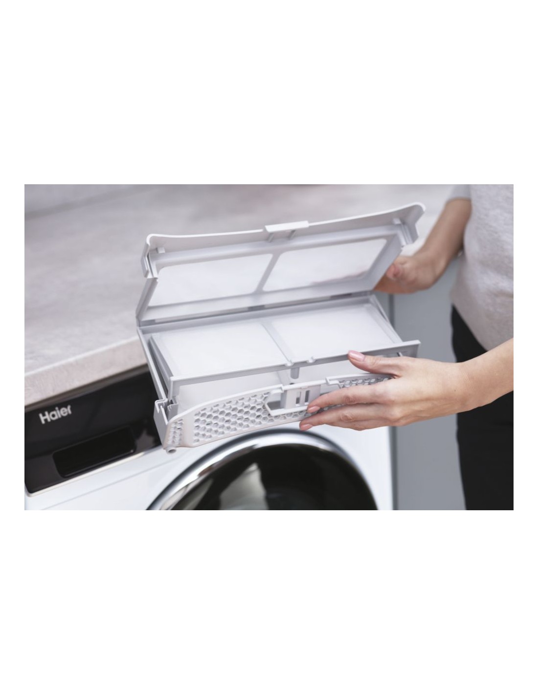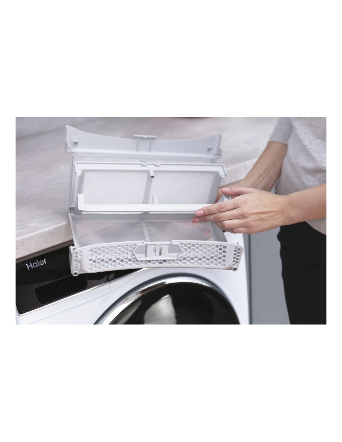 Il nuovo sistema di filtraggio a triplo strato Haier consente di raccogliere facilmente lanugine e fibre in un unico spazio grazie al design integrato. L'accesso dall'oblò offre la massima semplicità di utilizzo.