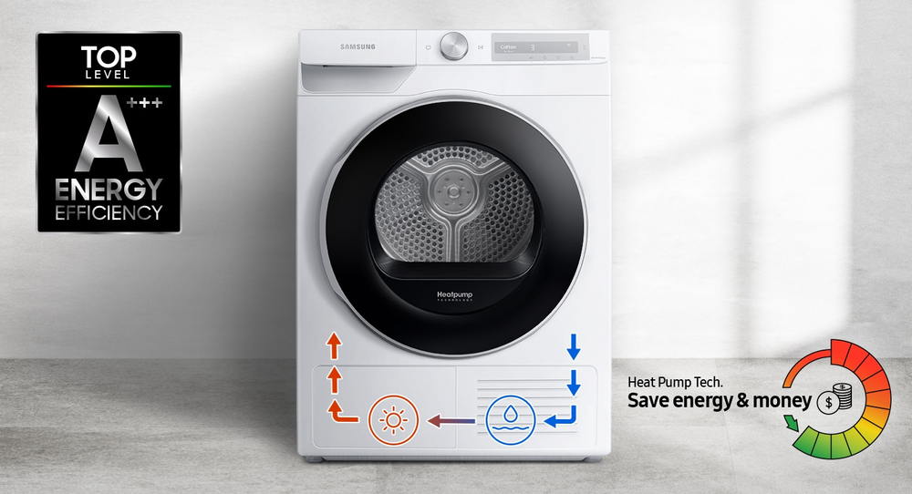 La tecnologia Pompa di Calore offre una soluzione più efficiente, conveniente e delicata per asciugare gli abiti, e grazie alla classe energetica A+++, assicura consumi estremamente ridotti.