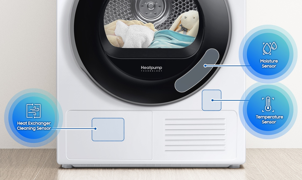 Optimal Dry SensorOttimizza lasciugatura senza sforzo! La tecnologia OptimalDry ti offre i migliori risultati possibili, grazie ai suoi 3 sensori che monitorano lumidità e la temperatura allinterno del cestello e regolano il tempo di asciugatura: il bucato sarà pronto rapidamente e con il minor dispendio energetico possibile. In più, evita che i tessuti si danneggino e ti ricorda di pulire lo scambiatore di calore.