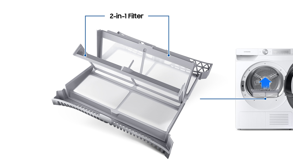 Filtro 2 in 1Prendersi cura dellasciugatrice e ottimizzarne prestazioni e sicurezza non è mai stato così facile. L'innovativo Filtro 2in1 unisce in un'unica soluzione due filtri, eliminando sprechi di tempo ed energia. Più semplice da pulire, garantisce prestazioni sempre eccellenti. In più, due allarmi ti avvisano quando è il momento di pulire filtro e scambiatore di calore.