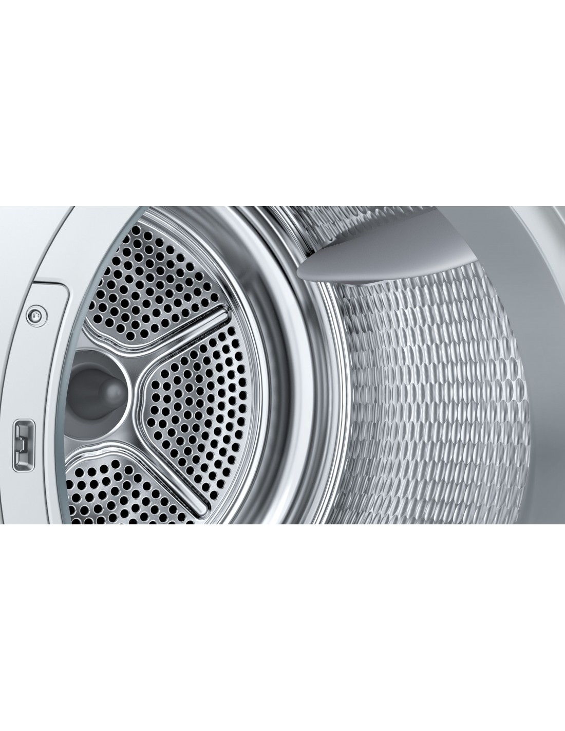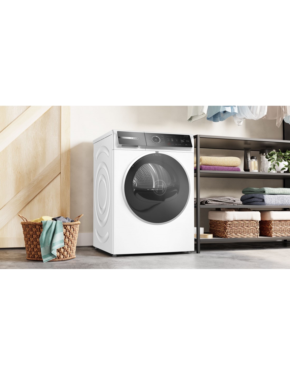 L'asciugatrice a pompa di calore con classe di efficienza energetica A, condensatore autopulente e Air Max Dry risparmia energia e riduce le pieghe grazie a Iron Assist.