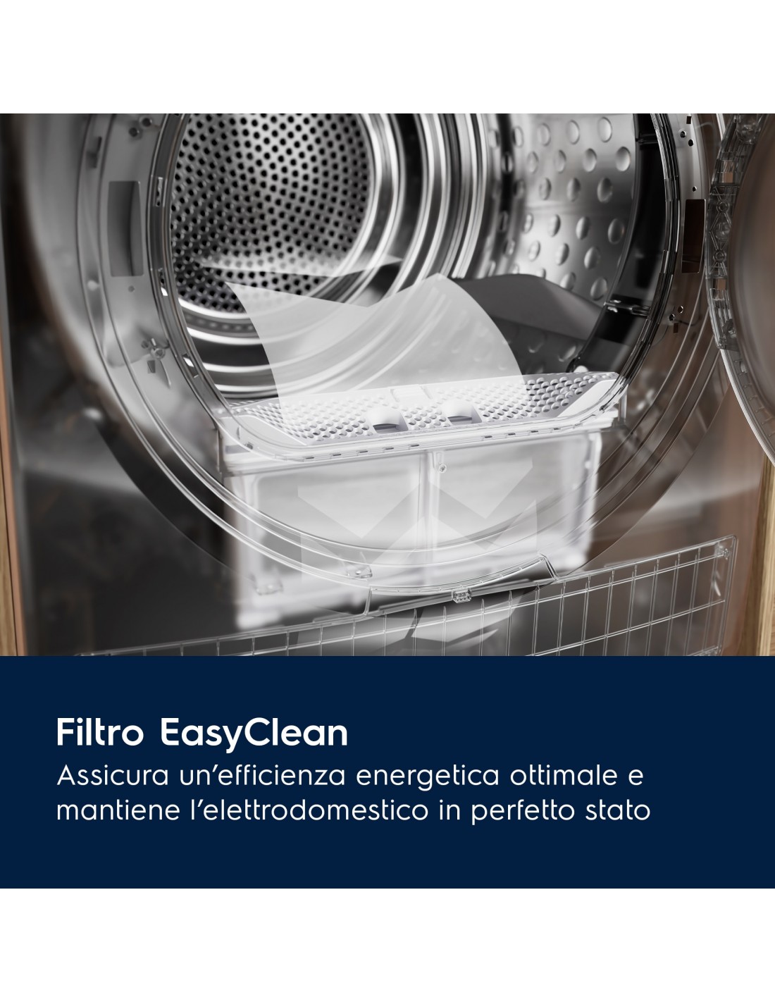 Il Filtro EasyClean è facile da pulire e consente all’asciugatrice di funzionare al meglio, mantenendone l’efficienza energetica.