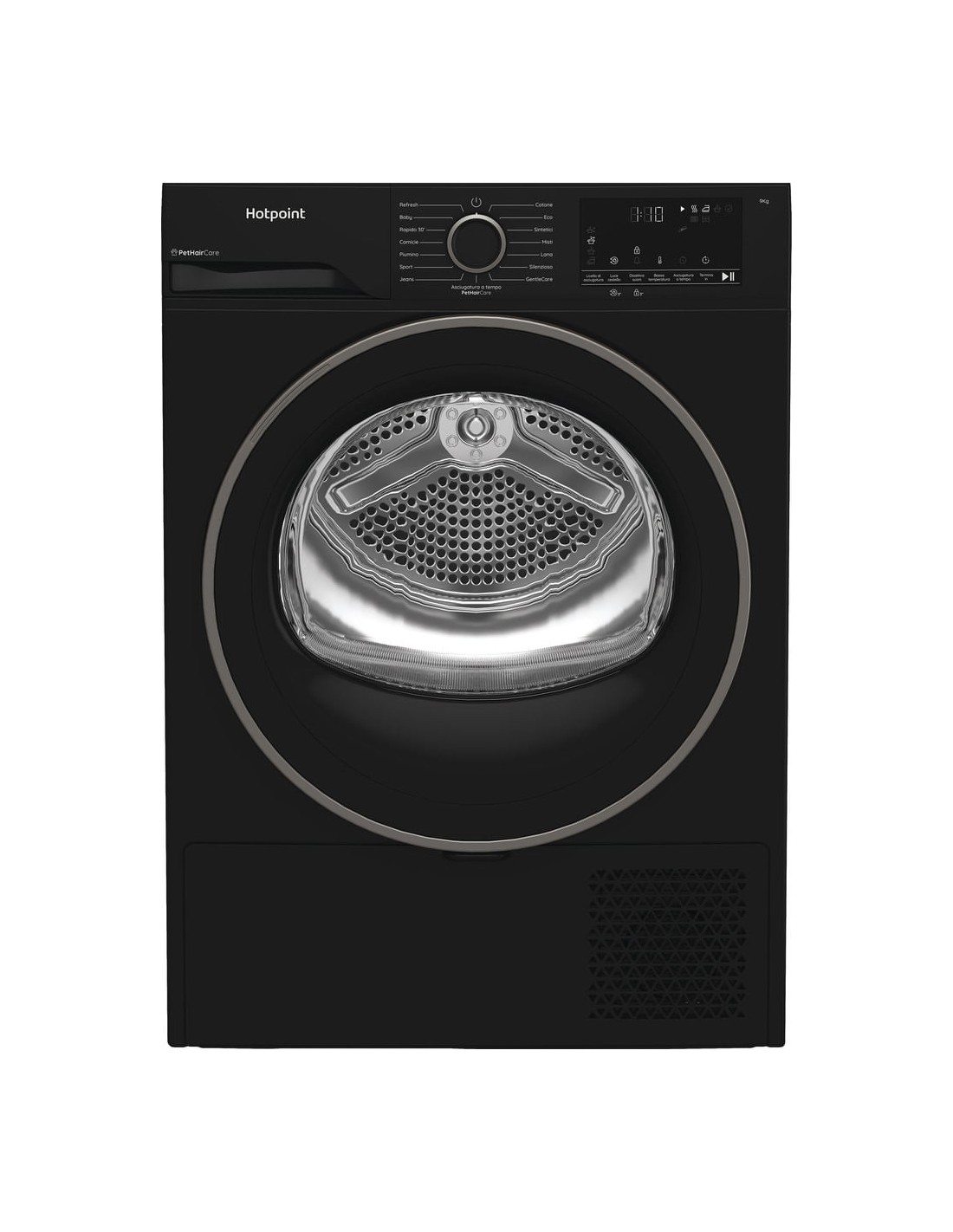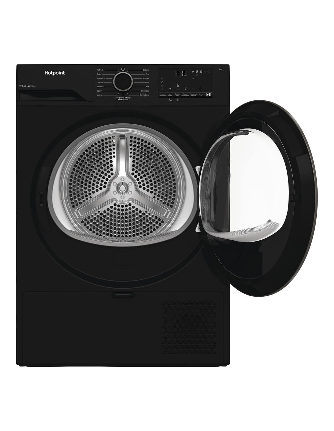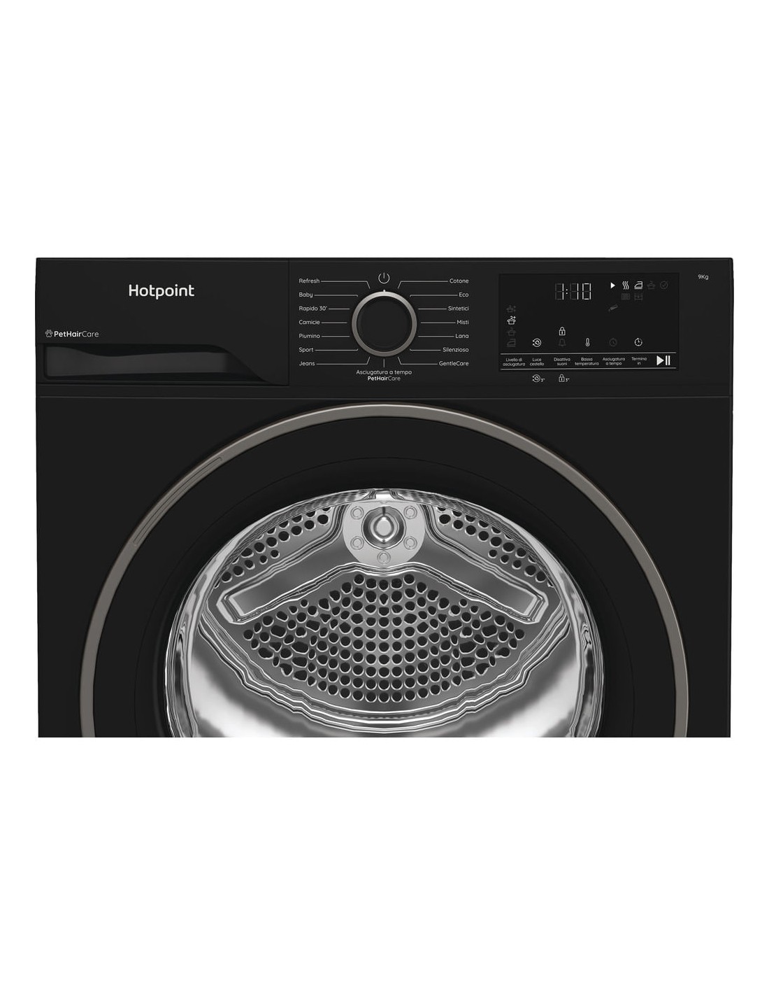 Caratteristiche di questa asciugatrice a libera installazione Hotpoint Ariston: colore nero. Eccezionale capacità del cestello di 9,0 kg per non restare mai senza spazio.