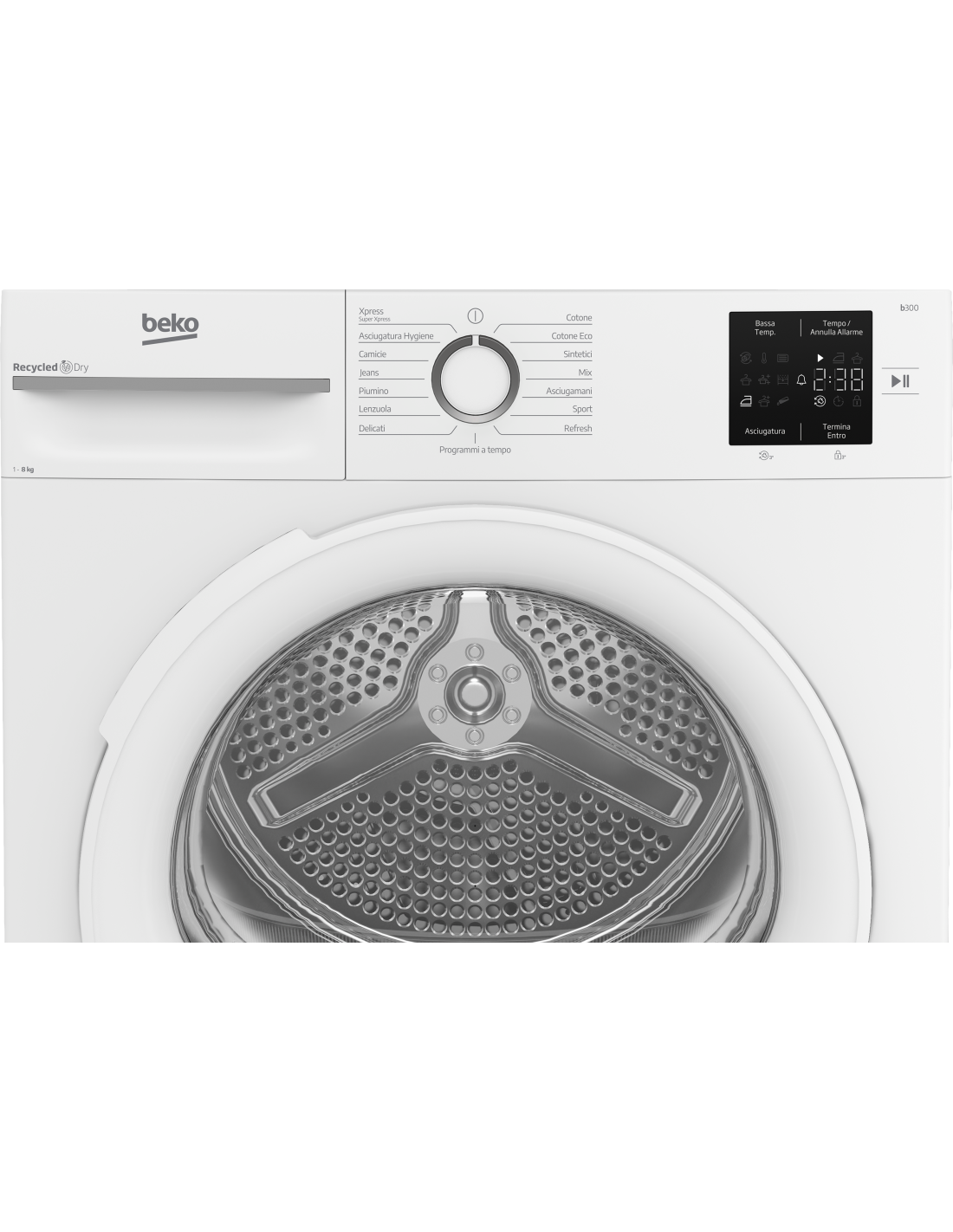 - Cotone, Cotton eco, Delicati/Seta, Piumino/piumone, Hygienic drying, Hygienic freshen-up, Jeans/denim, Mix, Rapido, Shirts, Sport, Sintetico, Programmato, Asciugamano