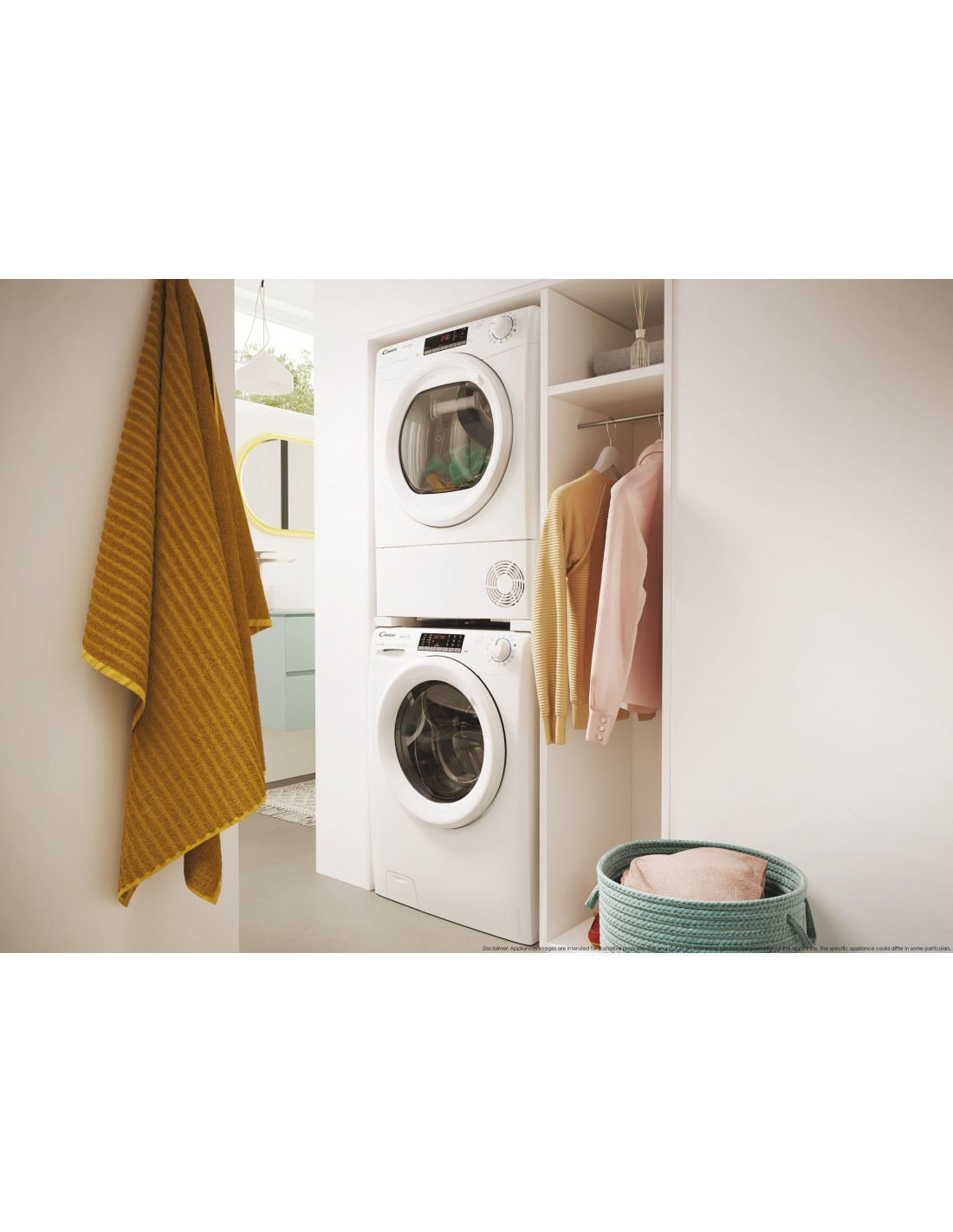 Oggi le persone hanno bisogno di ottimizzare lo spazio e il tempo sempre di più, per questo Candy fornisce una nuova soluzione: la nuova asciugatrice è l'unica sul mercato che possa essere messa sopra la lavatrice Slim. Occupa solo 46 cm e ha una capacità di 7 kg: questa è la perfetta coppia Smart che ti assicura un grande lavaggio e un'asciugatura comfort, come per i modelli standard.
