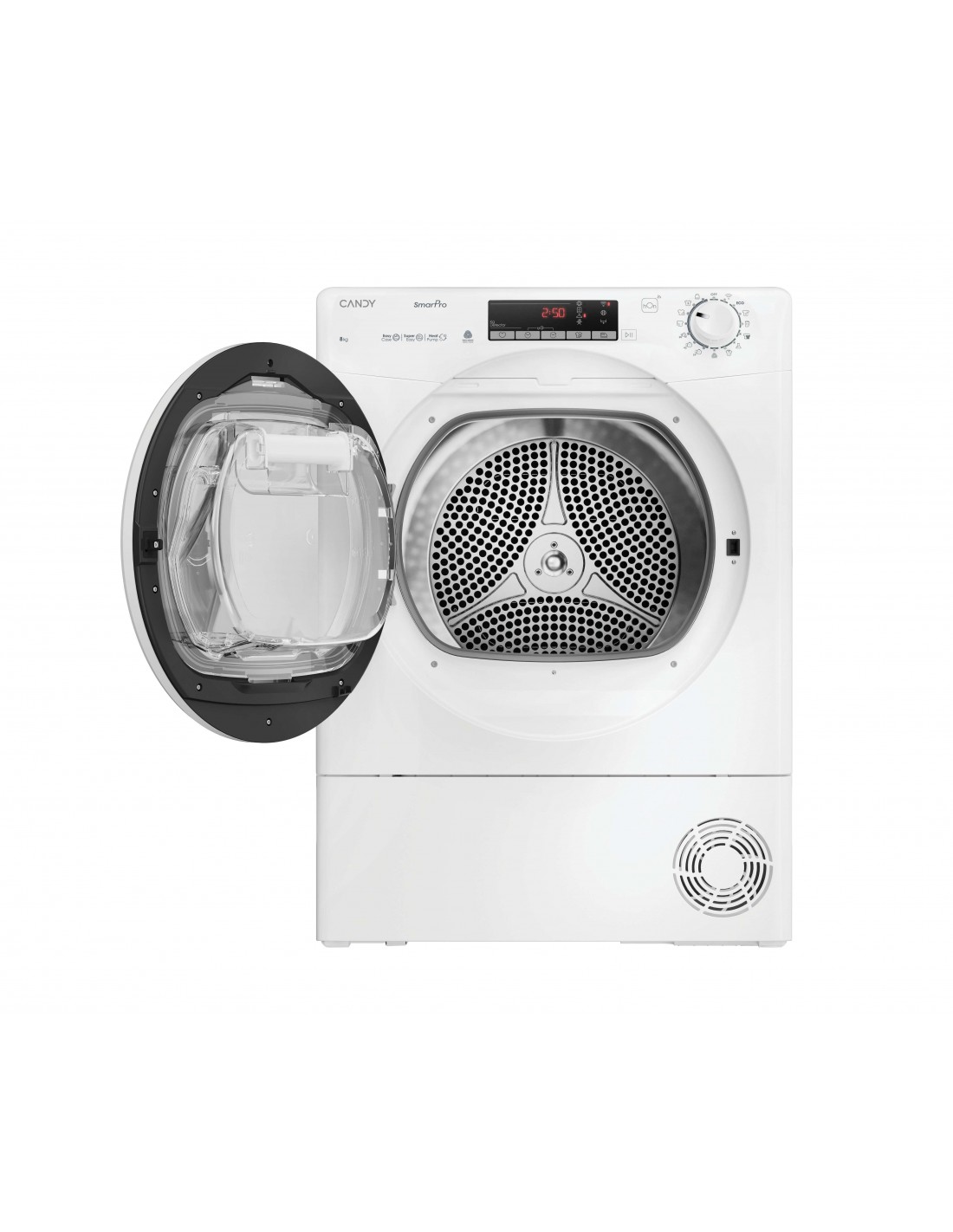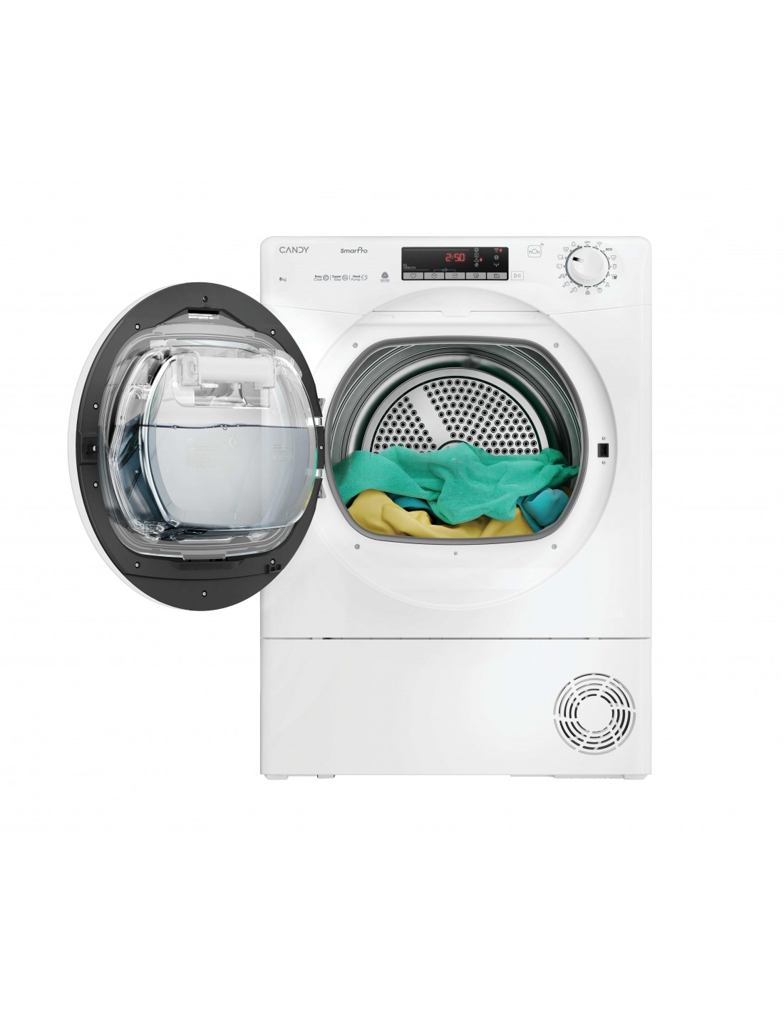 Candy CRO EH8N2TE-S. Posizionamento dell'apparecchio: Libera installazione, Tipo di carica: Caricamento frontale, Sistema di asciugatura: Pompa di calore. Capacità cestello: 8 kg, Classe di efficienza della condensazione: B, Programmi di asciugatura: A colori, Quotidiano, Eco, Jeans/denim, Rapido, Refresh, Shirts, Sport, Vestiti bianchi, Lana. Partenza ritardata: 24 h, Applicazioni per il controllo supportate: hOn, Funzioni delle app: Diagnostica remota, Monitoraggio remoto, Avvio a distanza. Classe efficienza energetica: D, Consumo energetico per 100 cicli: 119 kWh, Fonte di calore: Elettrico. Profondità: 604 mm, Larghezza: 596 mm, Altezza: 850 mm