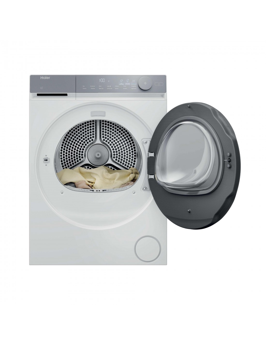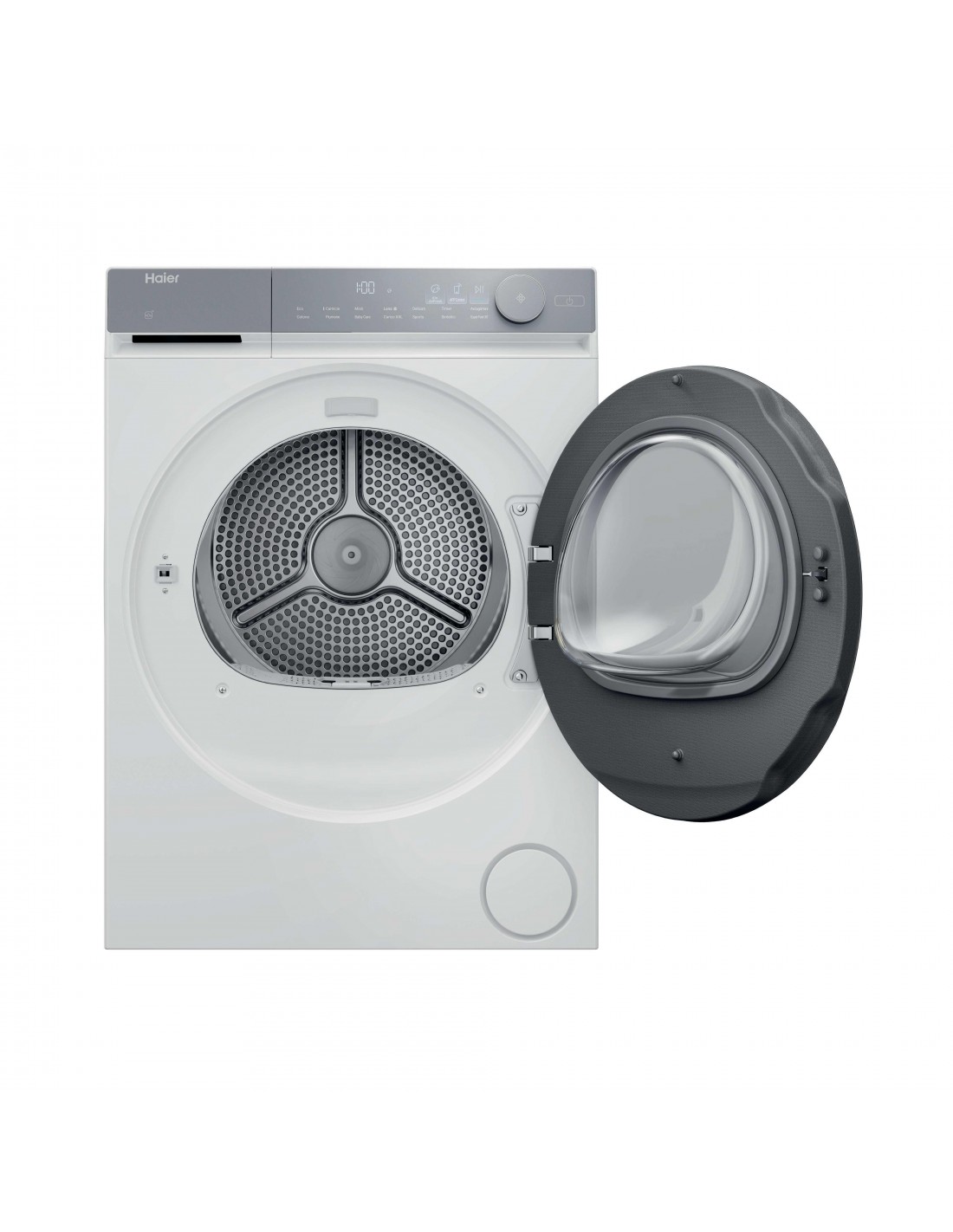 Haier X Series 7 HD90-A367U1-IT. Posizionamento dell'apparecchio: Libera installazione, Tipo di carica: Caricamento frontale, Sistema di asciugatura: Pompa di calore. Capacità cestello: 9 kg, Classe di efficienza della condensazione: B, Programmi di asciugatura: Cura del bambino, Cotone, Delicati/Seta, Piumino/piumone, Download cycle, Eco, Hygienic drying,.... Applicazioni per il controllo supportate: hOn, Funzioni delle app: Diagnostica remota, Monitoraggio remoto, Avvio a distanza. Classe efficienza energetica: A, Consumo energetico per 100 cicli: 79 kWh, Consumo energetico: 0,79 kWh. Profondità: 595 mm, Larghezza: 600 mm, Altezza: 845 mm