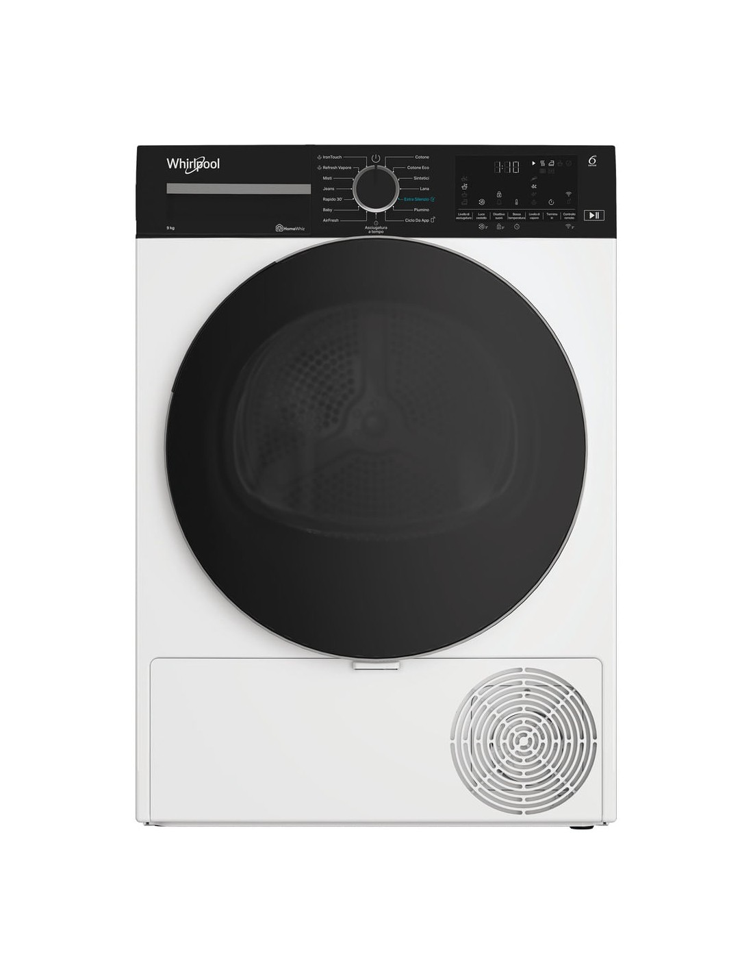 Tutto lo spazio di cui hai bisogno.Con una straordinaria capacità di carico di 9 kg, questa asciugatrice Whirlpool offre tutto lo spazio di cui hai bisogno per il tuo bucato.