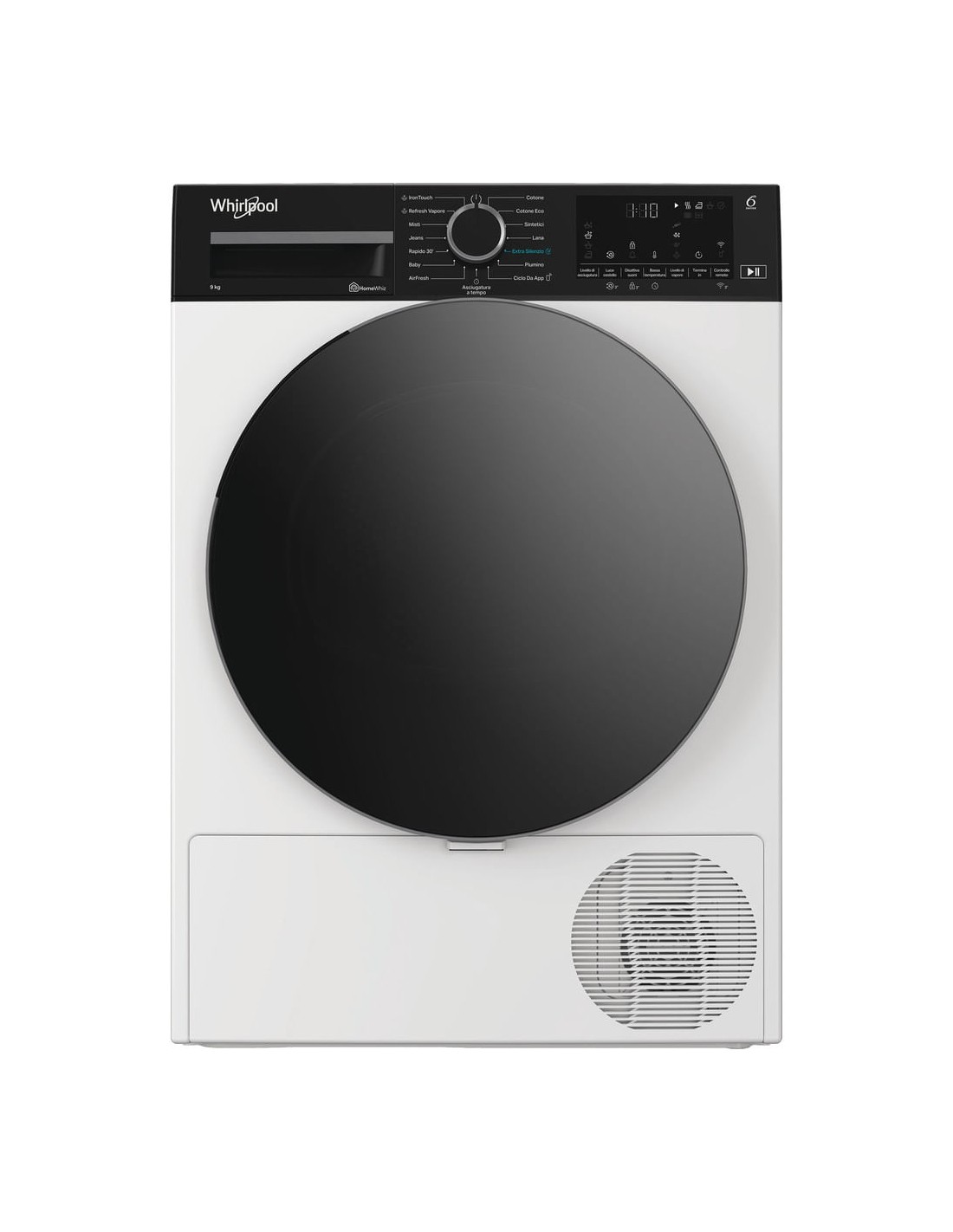 Tutto lo spazio di cui hai bisogno.Con una straordinaria capacità di carico di 9 kg, questa asciugatrice Whirlpool offre tutto lo spazio di cui hai bisogno per il tuo bucato.
