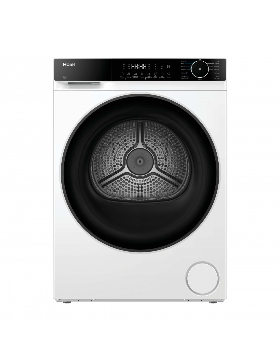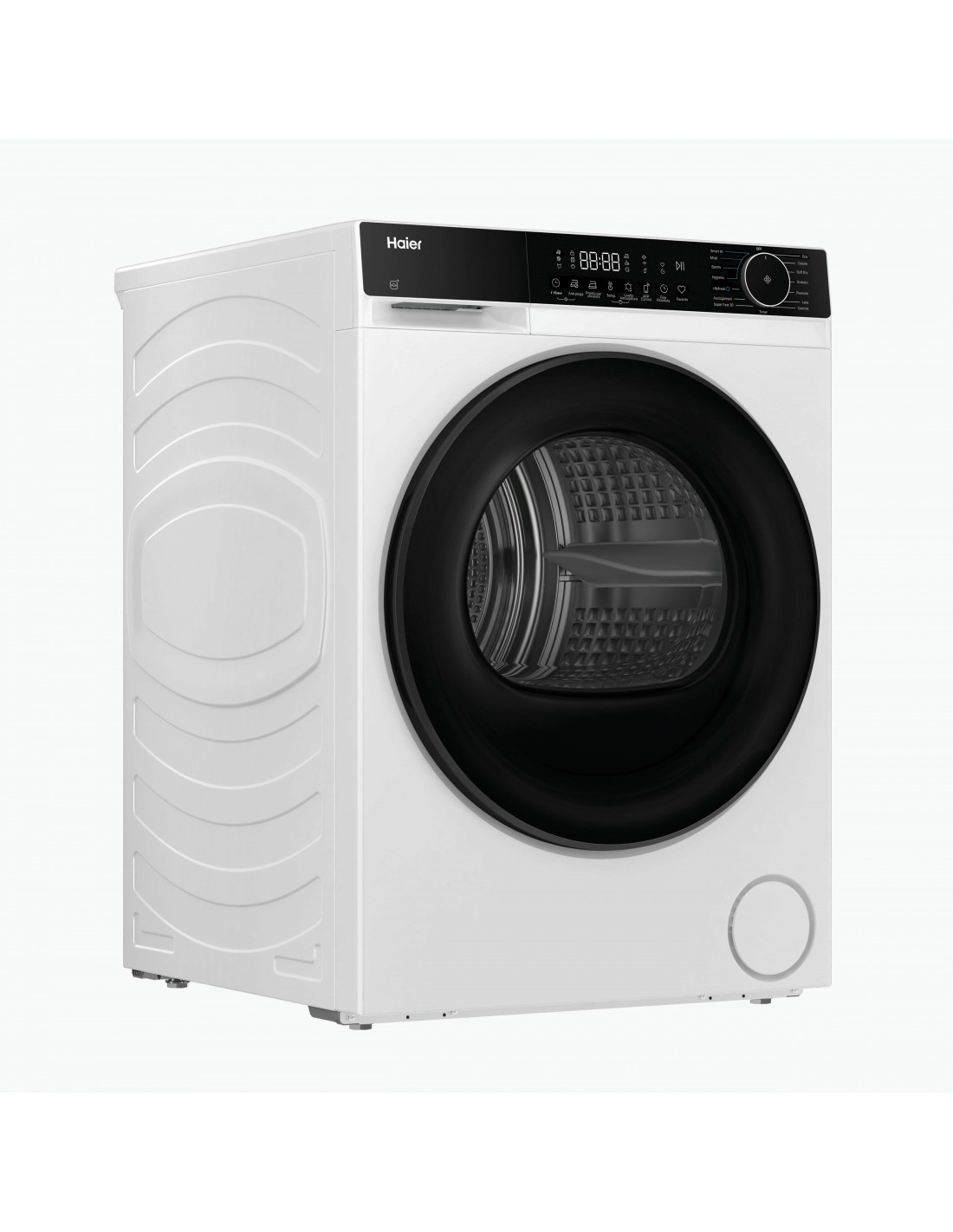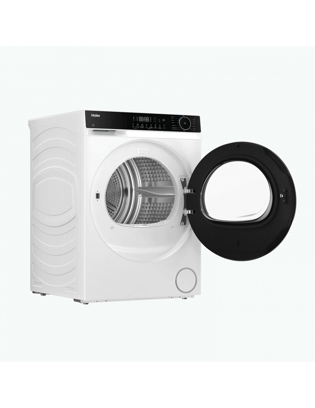 Haier X Series 5, Asciugatrice 8 KG, Classe D, Bianco, I-Refresh, Wi-Fi, Smart AI, HD80-D357U1-IT. Posizionamento dell'apparecchio: Libera installazione, Tipo di carica: Caricamento frontale, Sistema di asciugatura: Pompa di calore. Capacità cestello: 8 kg, Classe di efficienza della condensazione: B, Programmi di asciugatura: Cotone, Delicati/Seta, Piumino/piumone, Eco, Hygienic drying, Mix, Rapido, Refresh, Shirts, Sport,.... Partenza ritardata: 24 h, Applicazioni per il controllo supportate: hOn, Funzioni delle app: Diagnostica remota, Monitoraggio remoto, Avvio a distanza. Classe efficienza energetica: D, Consumo energetico per 100 cicli: 118 kWh, Consumo energetico: 1,18 kWh. Profondità: 593 mm, Larghezza: 595 mm, Altezza: 845 mm