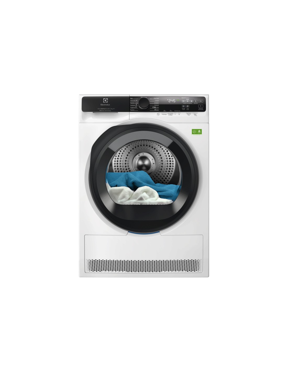 SmartSelect è l’assistente integrato per il bucato. Seleziona rapidamente l’asciugatura desiderata. Collegando lavatrice e asciugatrice Electrolux, SyncDry abbina le impostazioni dell’asciugatrice al ciclo di lavaggio precedente. Gestisci l'avvio dell'asciugatrice a distanza con l'avvio da remoto.