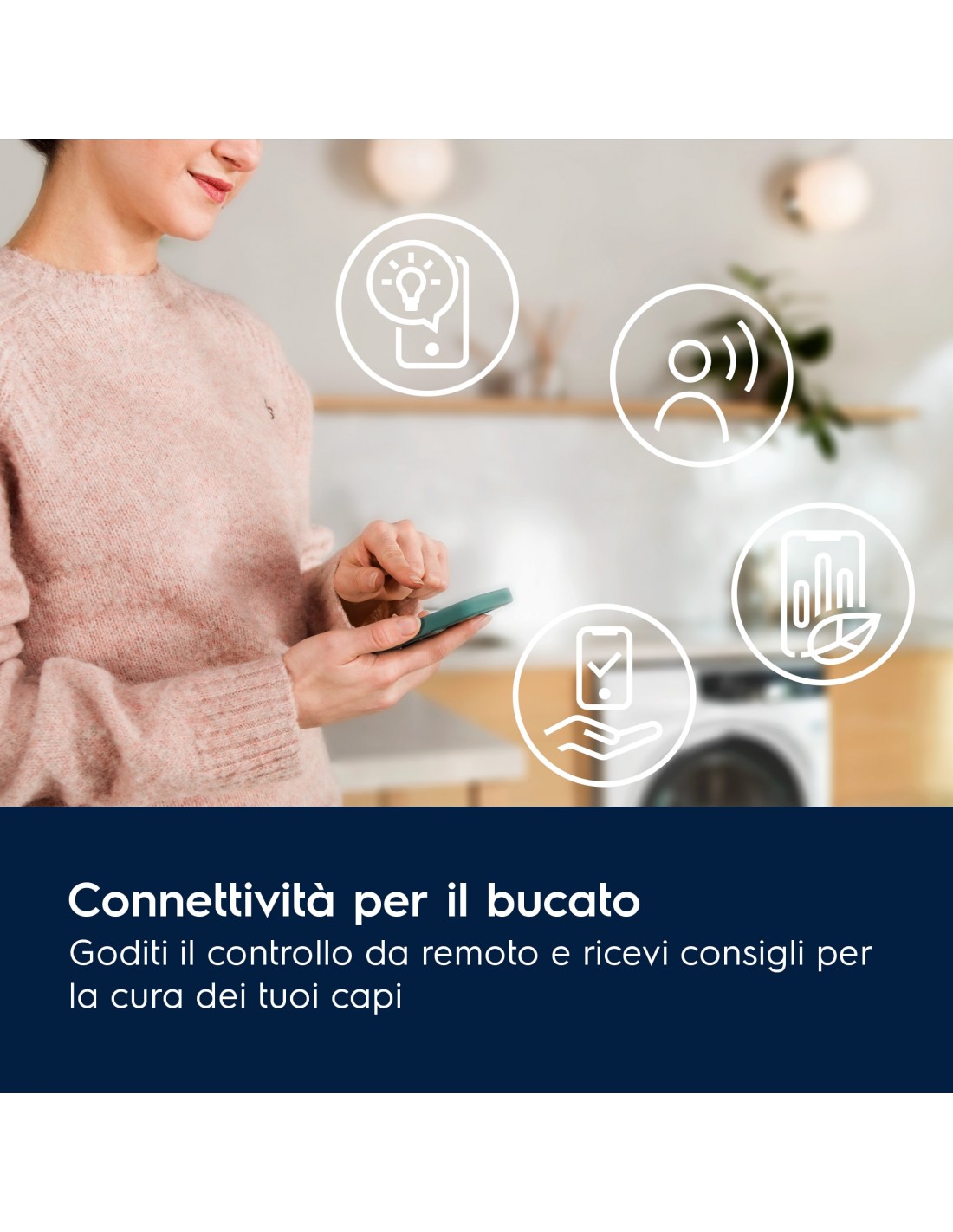 Collega la tua macchina all’App Electrolux per il controllo da remoto, gli aggiornamenti in tempo reale e ricevere consigli per risparmiare risorse in base al tuo utilizzo. Collega la lavatrice e l'asciugatrice per risparmiare tempo con programmi di lavaggio e asciugatura sincronizzati.