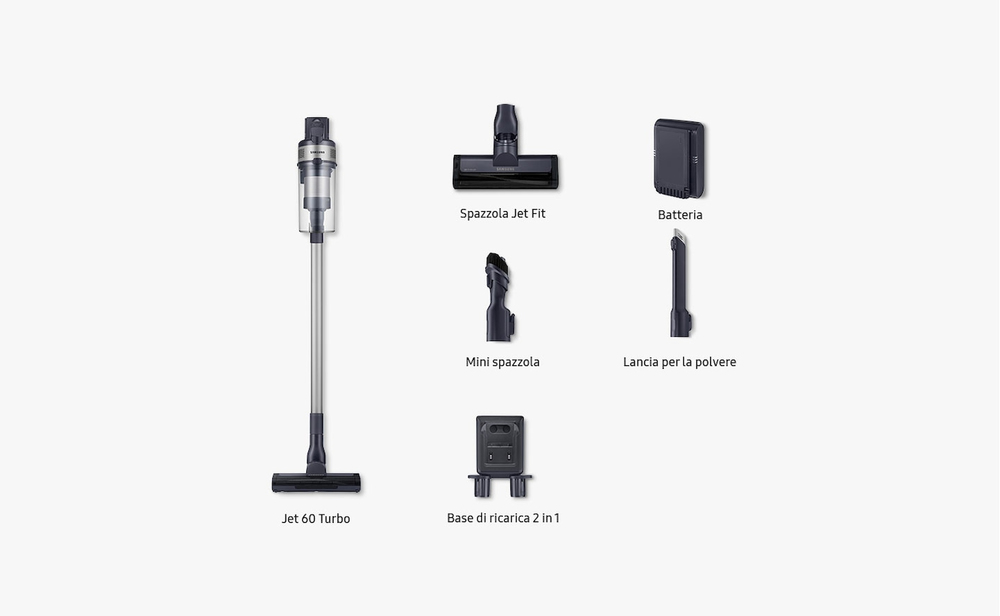 Pulisci la tua casa senza sforzo, grazie a un design maneggevole e leggero in grado di ridurre la tensione sul polso. Il corpo della scopa pesa solo 1.48kg, il 21% in meno* rispetto ai tradizionali aspirapolvere Samsung. In questo modo puoi pulire facilmente tutta la casa. * In confronto a Samsung VS8000. Peso del corpo della scopa: Jet 60 1.48kg vs. VS8000 1.89kg.