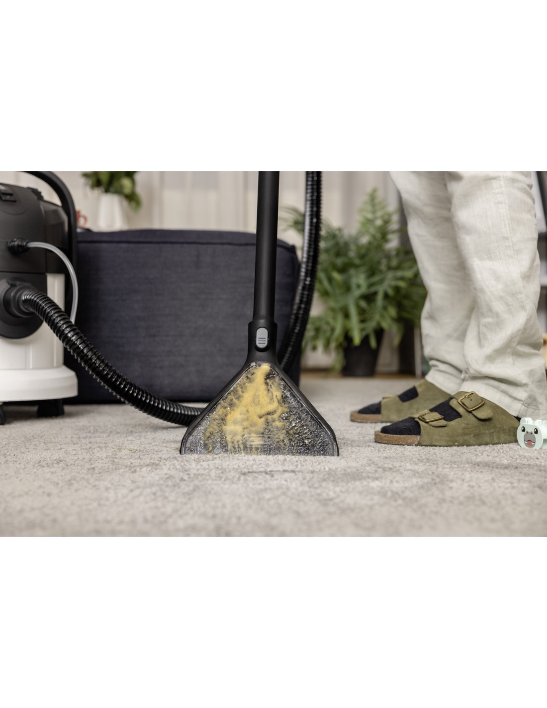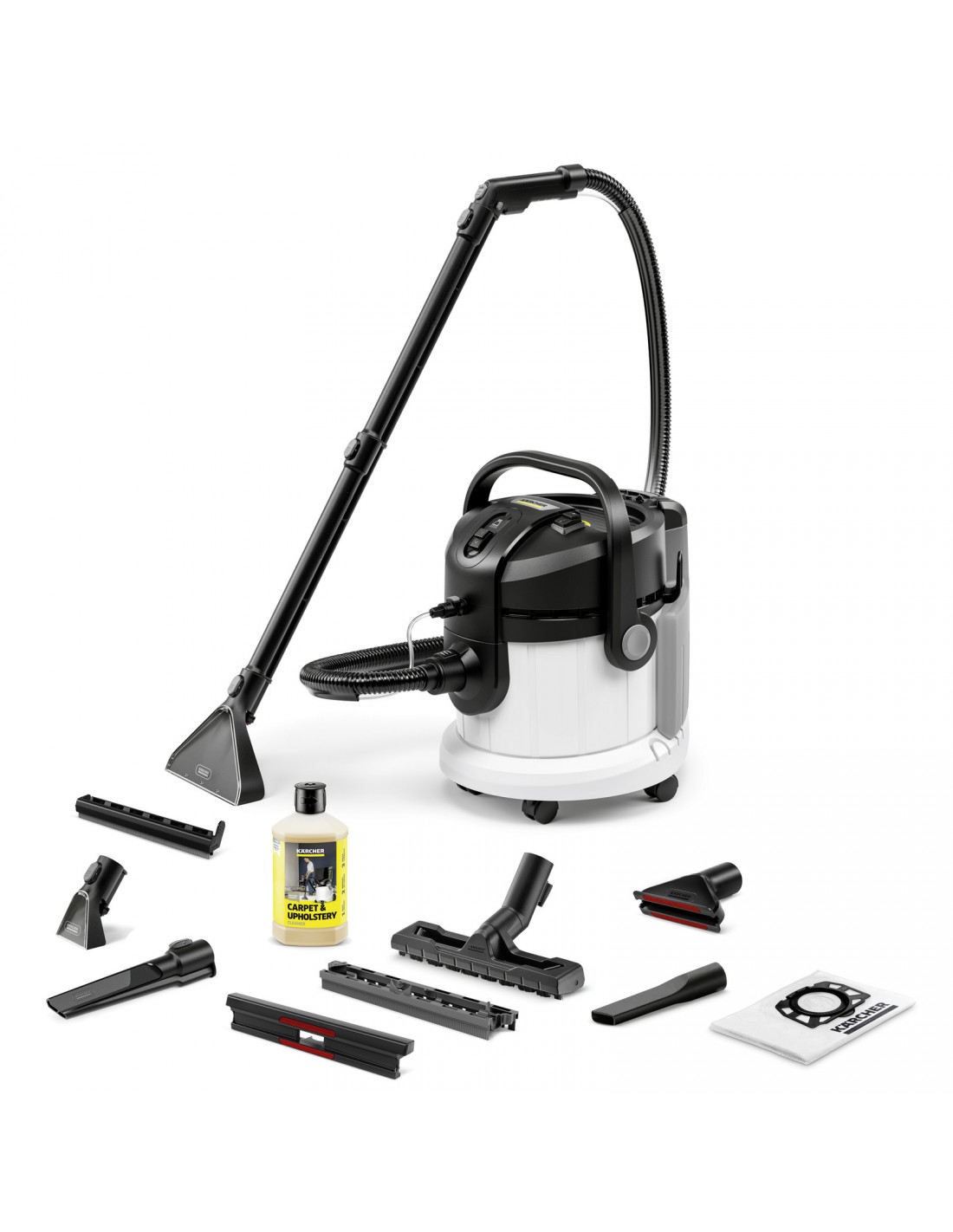Kärcher SE 4 Plus black/white 1.081-170.0. Massima potenza in entrata: 10 W. Tipo: Aspiratore a cilindro, Tipo di pulizia: Secco e bagnato, Tipo di contenitore della polvere: Sacchetto per la polvere. Metodo di separazione dello sporco: Filtro. Colore del prodotto: Nero, Bianco