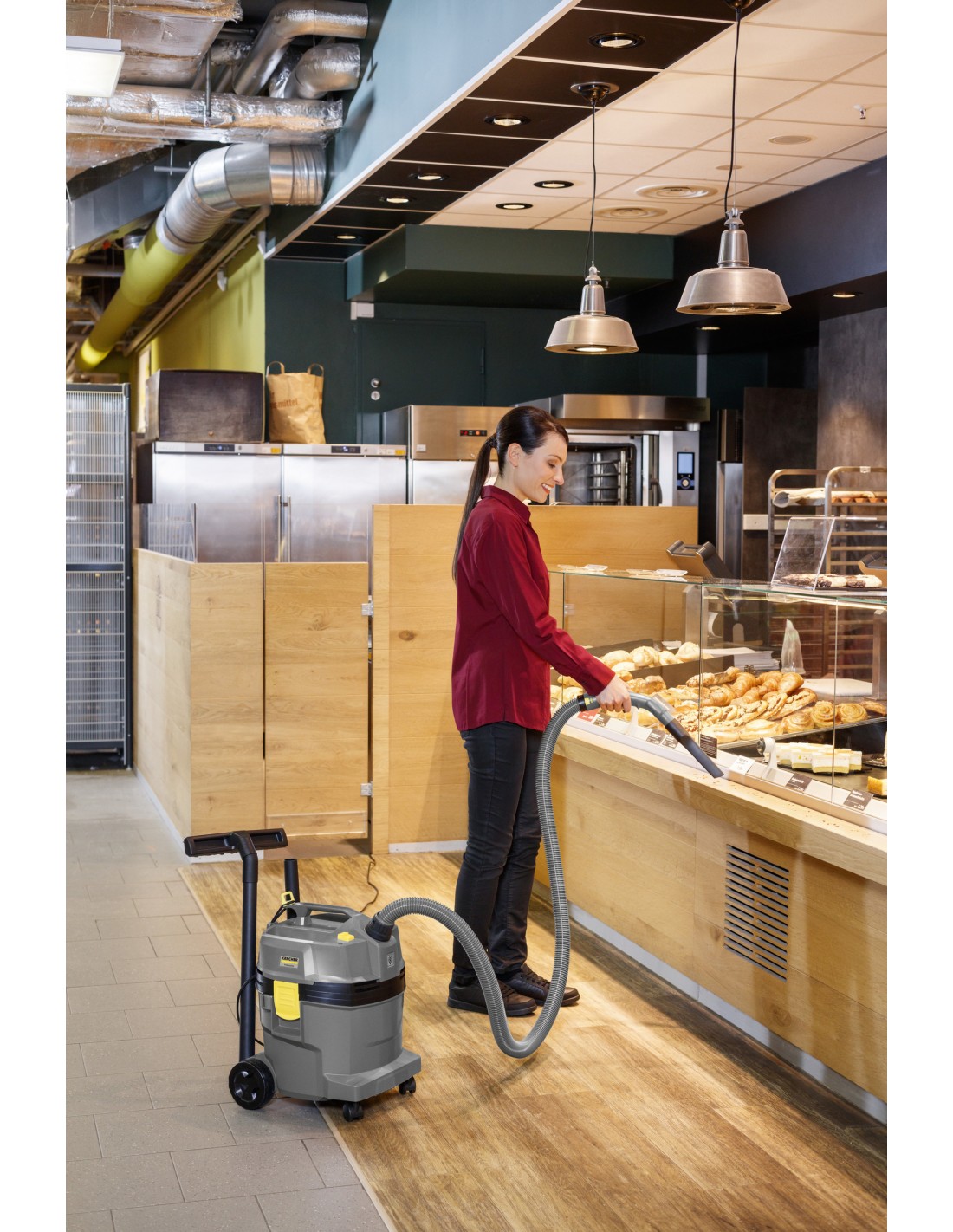 Piccolo, potente, resistente, molto versatile e leggero come una piuma. Questo aspiratore solidi liquidi entry level con scuotifiltro semi automatico è un ottimo alleato in parecchi ambiti per pulire quantità di polvere, sporco grossolano e sporco liquido in modo sicuro. Monta un filtro a cartuccia in PES che permette di aspirare solidi e liquidi contemporaneamente. Lo scuotifiltro è semi automatico e aiuta a mantenere alta e costante la potenza d'aspirazione. L'aggancio del tubo è sulla testata così da sfruttare tutta la capienza effettiva del vano raccolta. Leggero e compatto risulta molto facile da muovere, usare e trasportare.