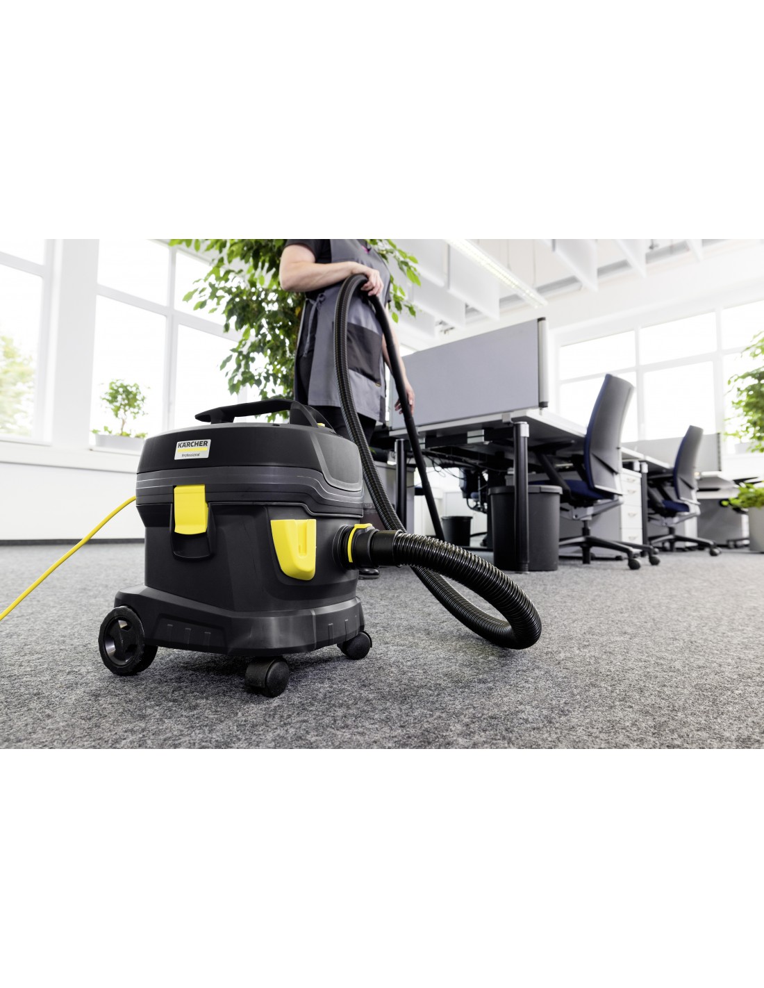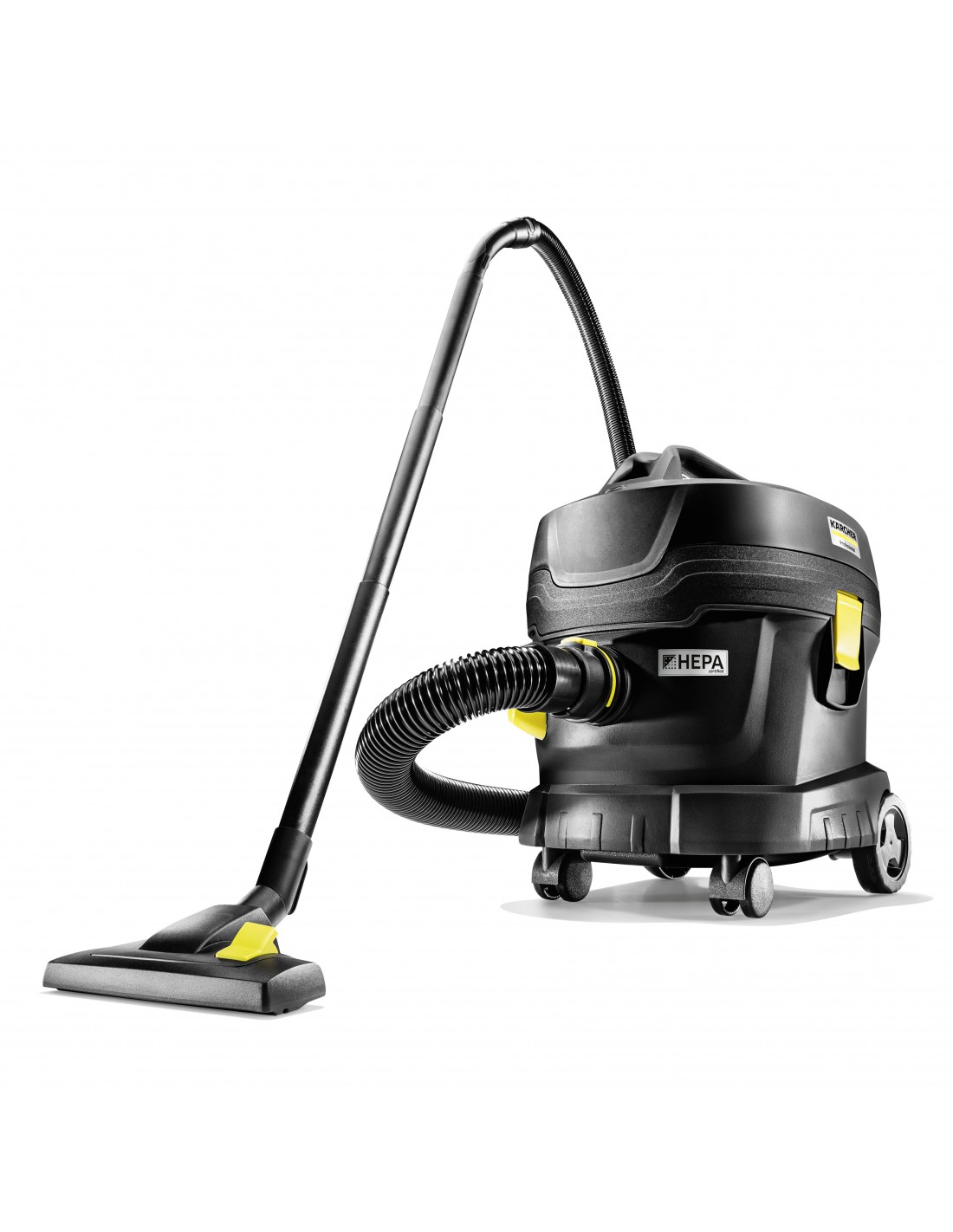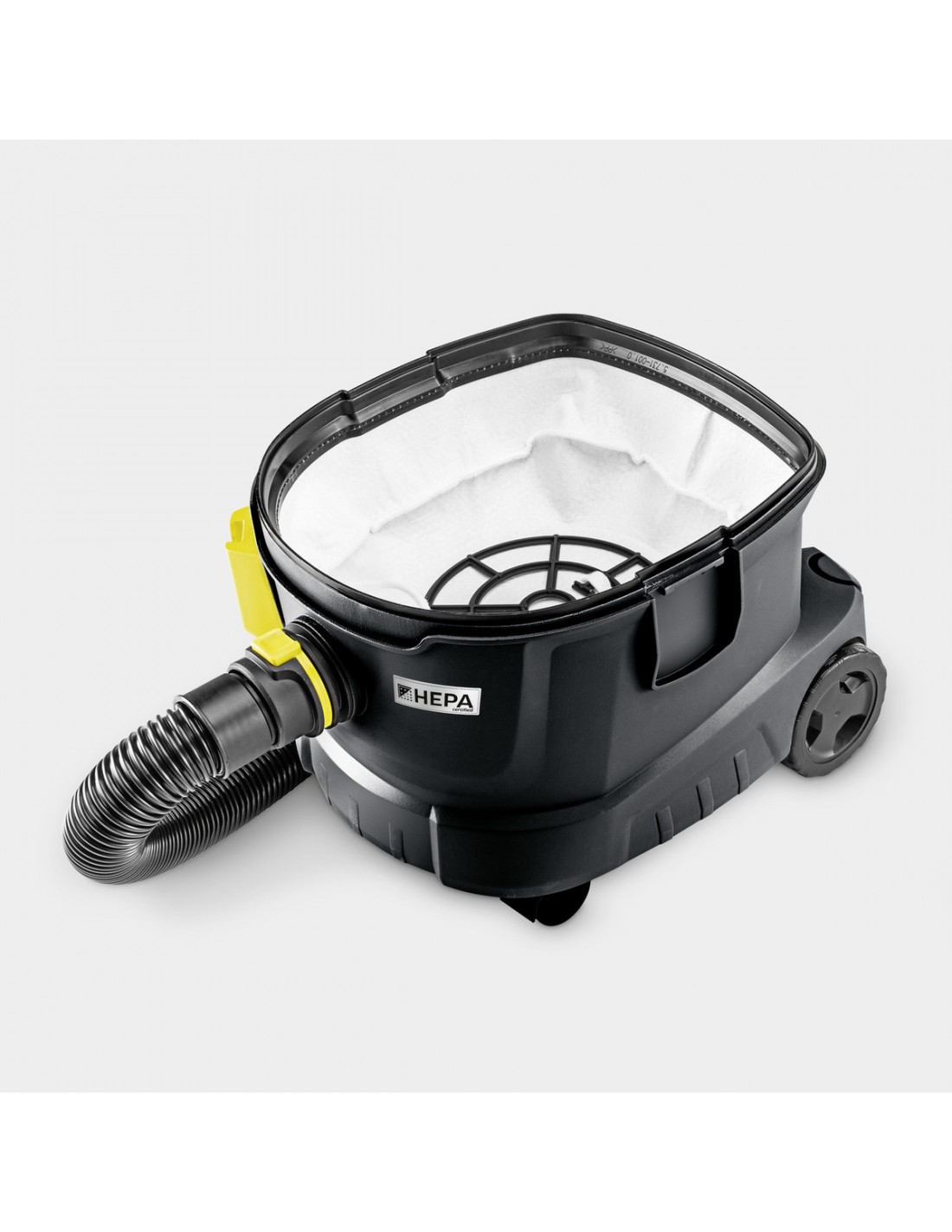 L'aspirapolvere T 11/1 Classic HEPA Re!Plast è sinonimo di sostenibilità, igiene, massima potenza di aspirazione e durata. Composto al 60% da materiali riciclati*, l'impiego di energia e materie prime per produrre la macchina è minimizzato . Grazie al filtro HEPA 14, certificato secondo la norma di prova DIN EN 1822:2019, con un grado di filtrazione e separazione del 99,995% incluso di serie, sono soddisfati anche i più elevati standard di sicurezza per le aree con requisiti igienici rigorosi. Cattura in modo affidabile anche le particelle più piccole come virus, aerosol e germi di pochi micrometri. L'aspirapolvere genera una depressione di 235 mbar da 850 watt di potenza, e permette di ottenere la massima potenza di aspirazione con una bassa rumorosità di soli 61 dB(A), ideale per i luoghi sensibili al rumore. La capacità di 11 litri, il peso di soli 4,2 chilogrammi, la maniglia per il trasporto e l'impugnatura ergonomica, garantiscono un lavoro senza fatica per periodi prolungati e facilità nel trasporto. Gli accessori, come il tubo di aspirazione e la bocchetta per pavimenti, possono essere comodamente riposti sull'aspirapolvere. In dotazione un sacchetto filtro in vello.