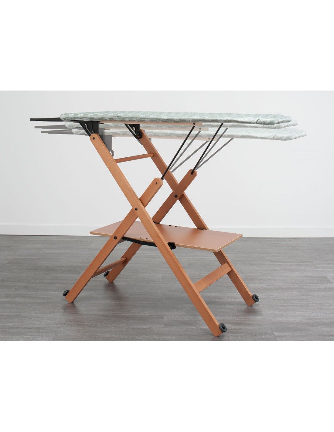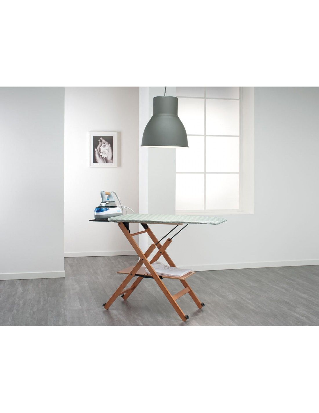- il piano da stiro è regolabile in tre posizioni, per adattarsi all'altezza di chi stira evitando il mal di schiena