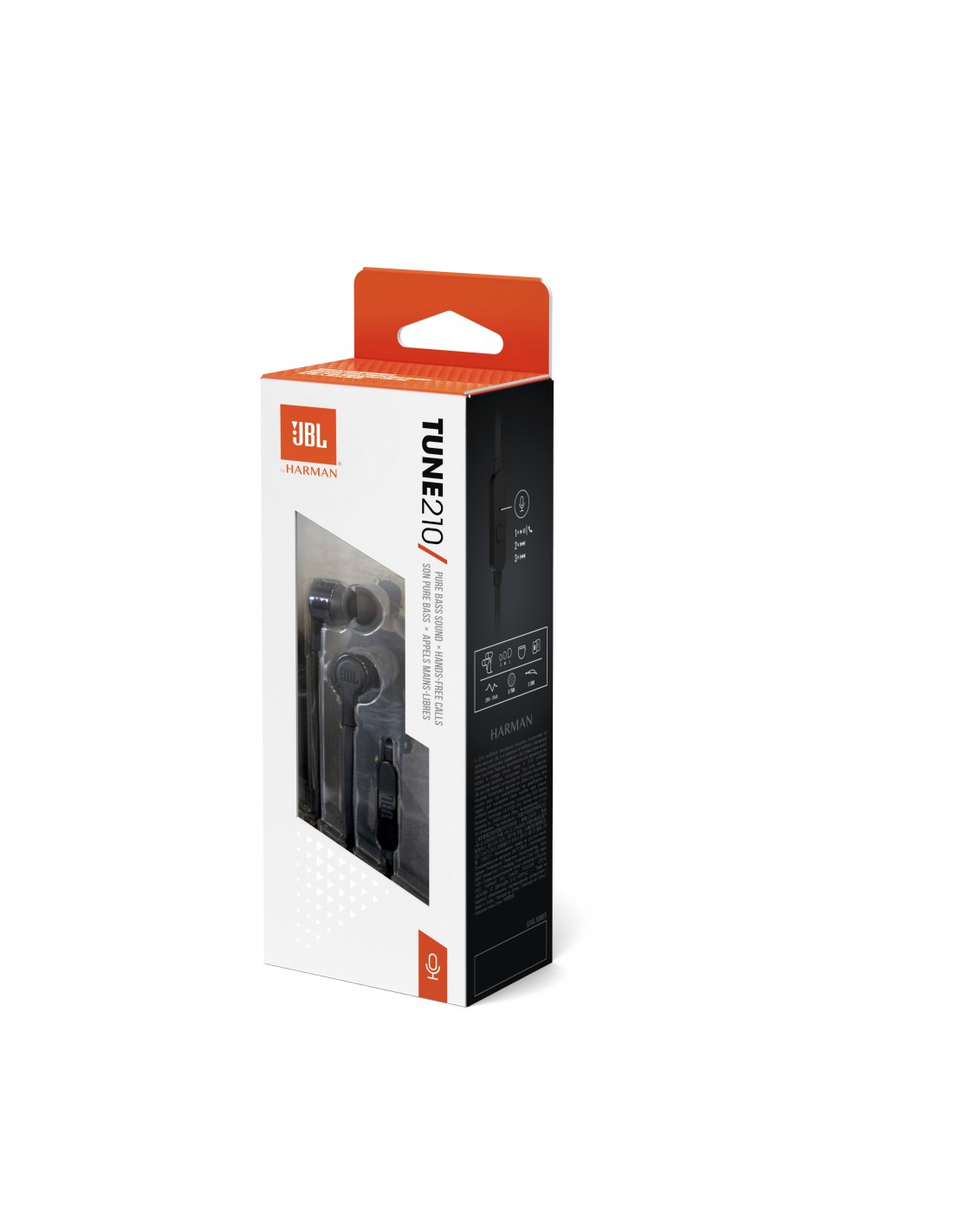JBL Tune 210. Tipo di prodotto: Auricolare. Tecnologia di connessione: Cablato. Utilizzo raccomandato: MUSICA. Frequenza cuffia: 20 - 20000 Hz. Colore del prodotto: Nero