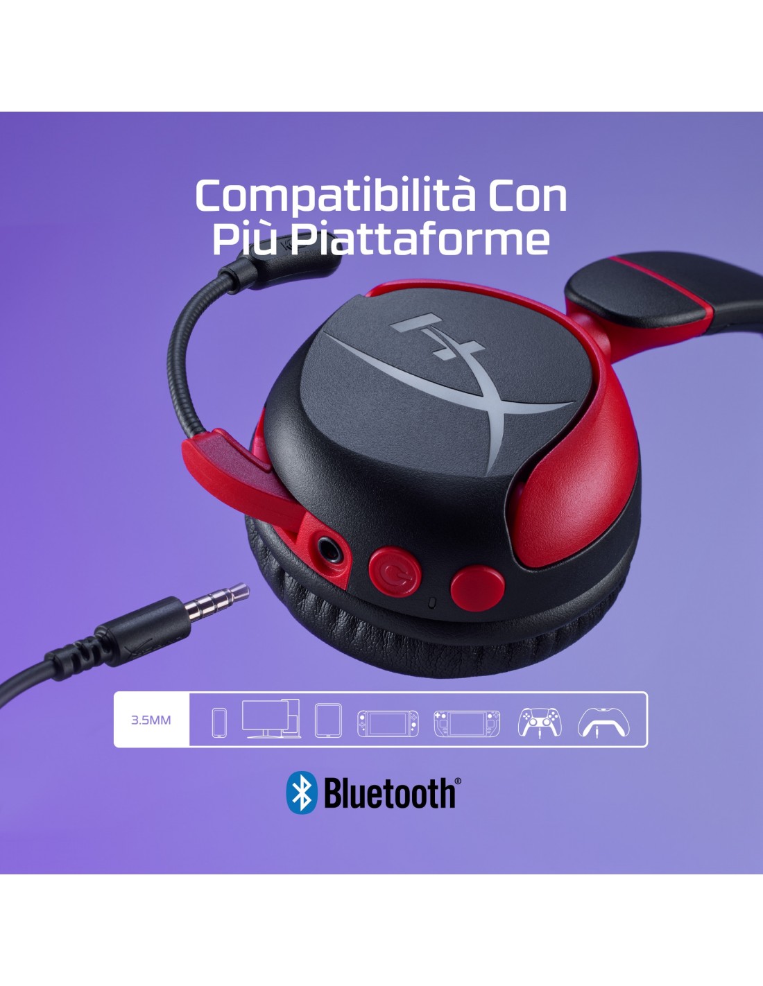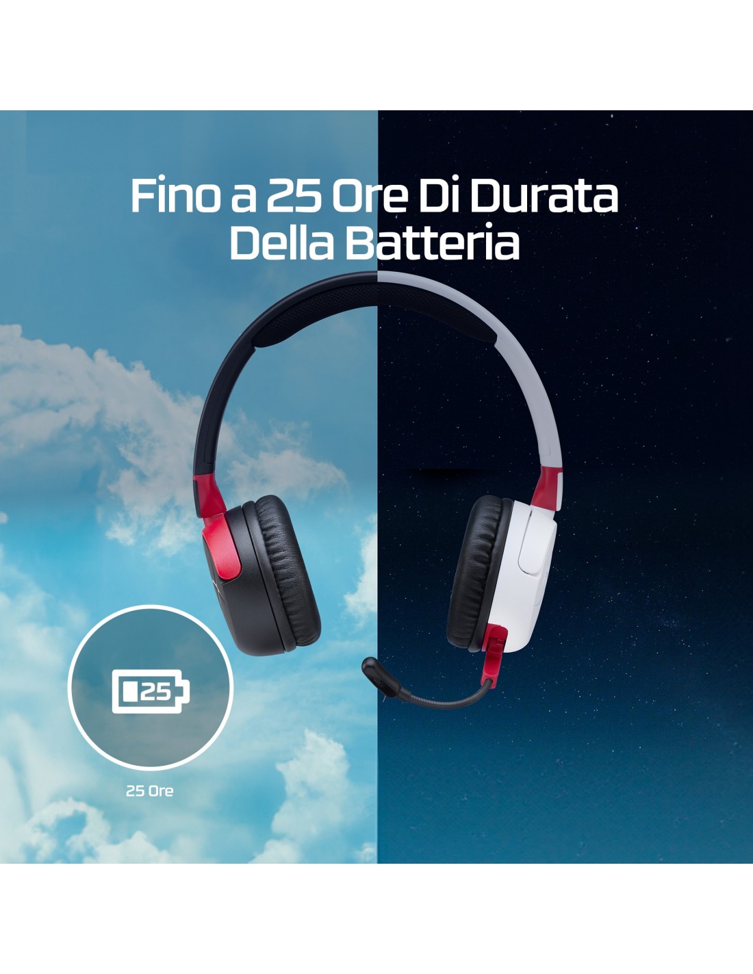 HyperX Cloud Mini: comode cuffie wireless pensate per i giovani gamer. Consigliate per gamer di età compresa fra gli 8 e i 12 anni, queste cuffie dalla taglia ridotta sono leggere e progettate per mantenere il livello dell'audio al di sotto degli 85 dB[1]. Con un’autonomia della batteria fino a 25 ore, sono perfette per lunghi voli o sessioni di gioco prolungate[2]. La facilità di associazione tramite Bluetooth offre tutta la libertà del wireless, evitando qualsiasi problema di cavi. Sono dotate di un microfono di alta qualità, per chattare con gli amici online. E grazie alla funzione flip-to-mute, il microfono può essere facilmente disattivato ripiegandolo all'indietro. Quando è il momento di fare una pausa, i padiglioni possono essere ruotati, semplificando anche il trasporto. Le cuffie Cloud Mini Wireless si possono collegare facilmente ai dispositivi compatibili con Bluetooth, nonché a qualsiasi dispositivo con un collegamento da 3,5 mm[4]. Cuffie versatili, pronte per l’utilizzo da parte dei giovani gamer su dispositivi mobili, Nintendo Switch, PlayStation, PC, Chromebook, Steam Deck o altrove[5].