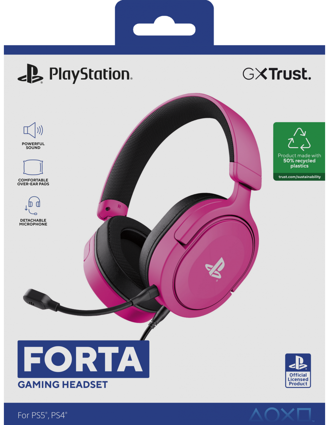 Trust GXT 498P Forta. Tipo di prodotto: Auricolare. Tecnologia di connessione: Cablato. Utilizzo raccomandato: Gaming. Frequenza cuffia: 20 - 20000 Hz. Lunghezza cavo: 1,2 m. Peso: 253 g. Colore del prodotto: Rosa