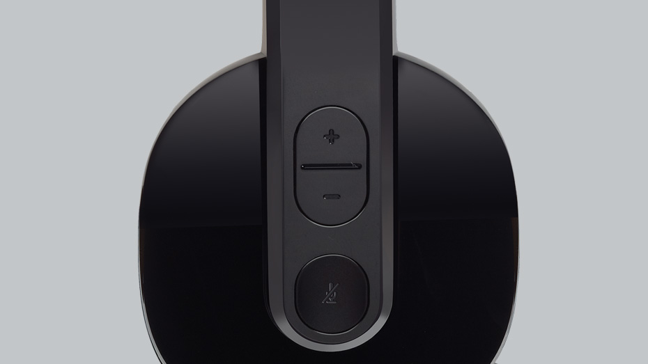 Regola il volume o disattiva l'audio delle chiamate con i comandi integrati posizionati sul copriorecchio destro. Un indicatore luminoso facile da vedere sul cavo della cuffia segnala lo stato di disattivazione audio.