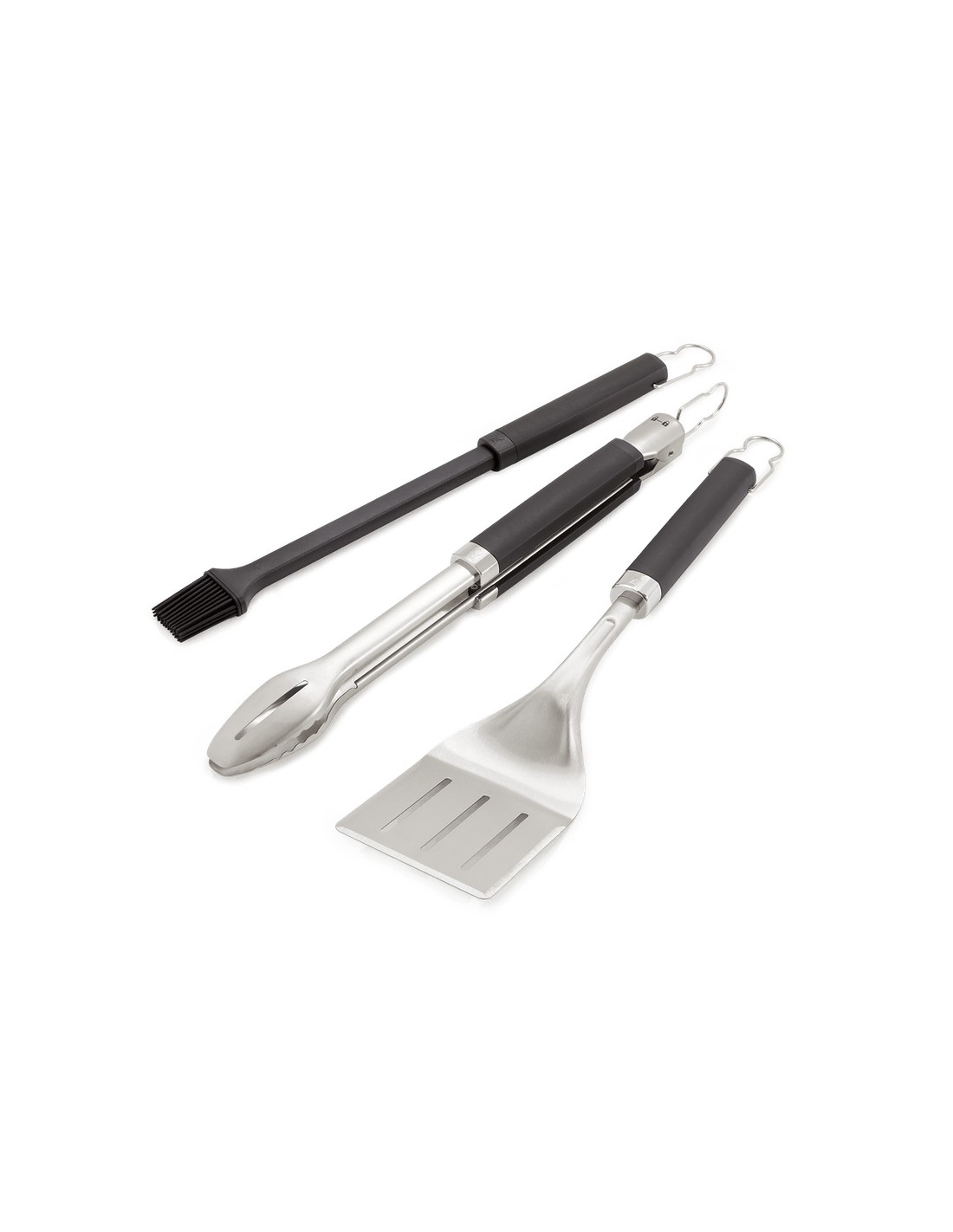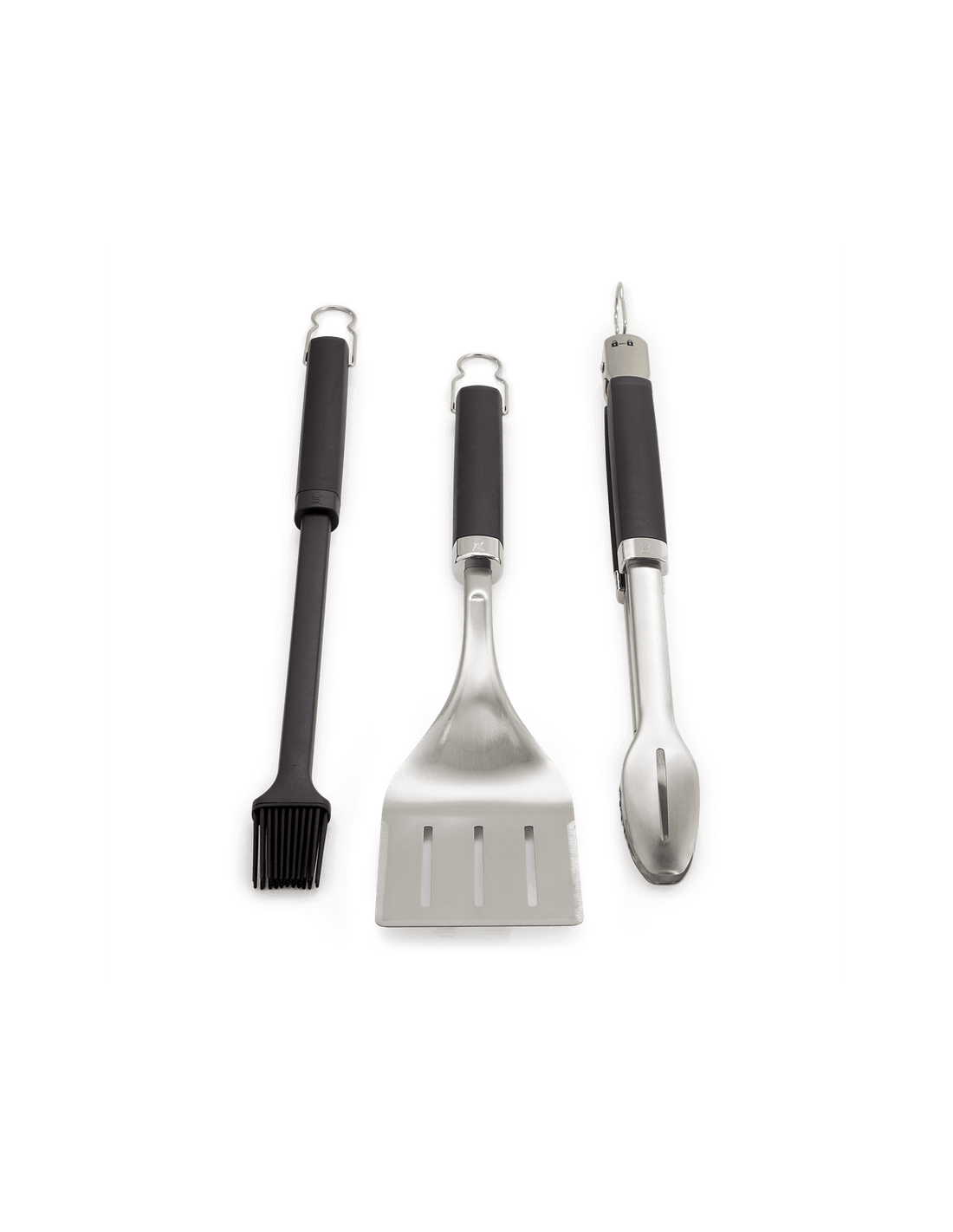 Gira gli hamburger e le verdure, e glassa le costolette per tanto sapore in più. La paletta con bordo smussato su 3 lati, la pinza con blocco automatico e il grande pennello per condimenti in silicone del Kit Precision sono elementi essenziali per grigliare tutti i giorni. Tutti gli utensili sono dotati di un'impugnatura morbida per una presa comoda e sicura.