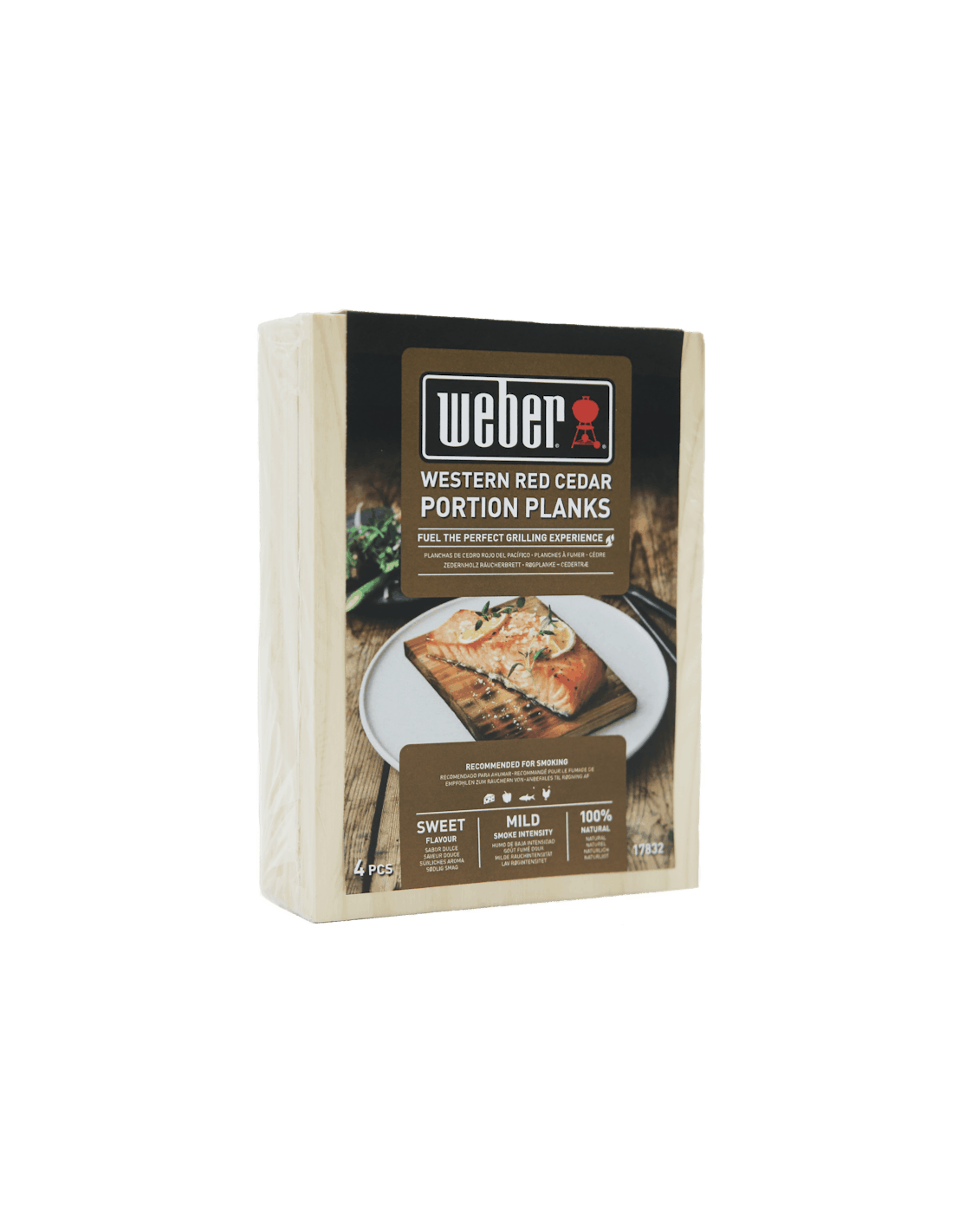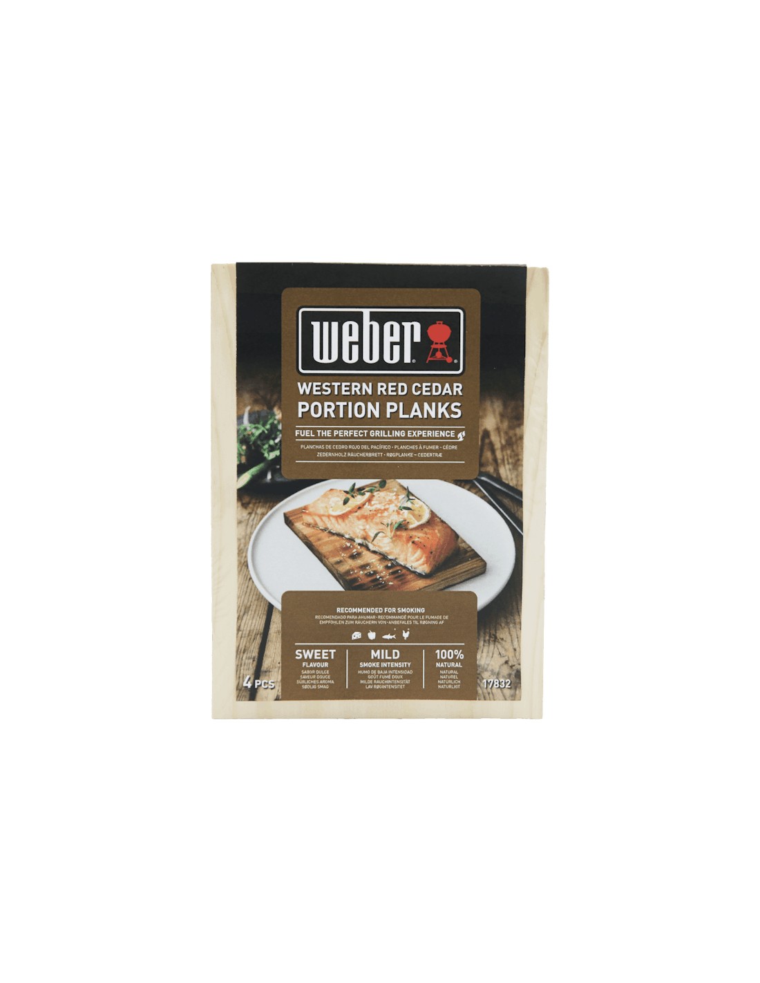 Weber 17832. Tipo: Tavole per affumicatura, Colore del prodotto: Legno, Materiali: Legno. Larghezza: 110 mm, Profondità: 150 mm, Altezza: 11 mm. Quantità per pacco: 4 pz