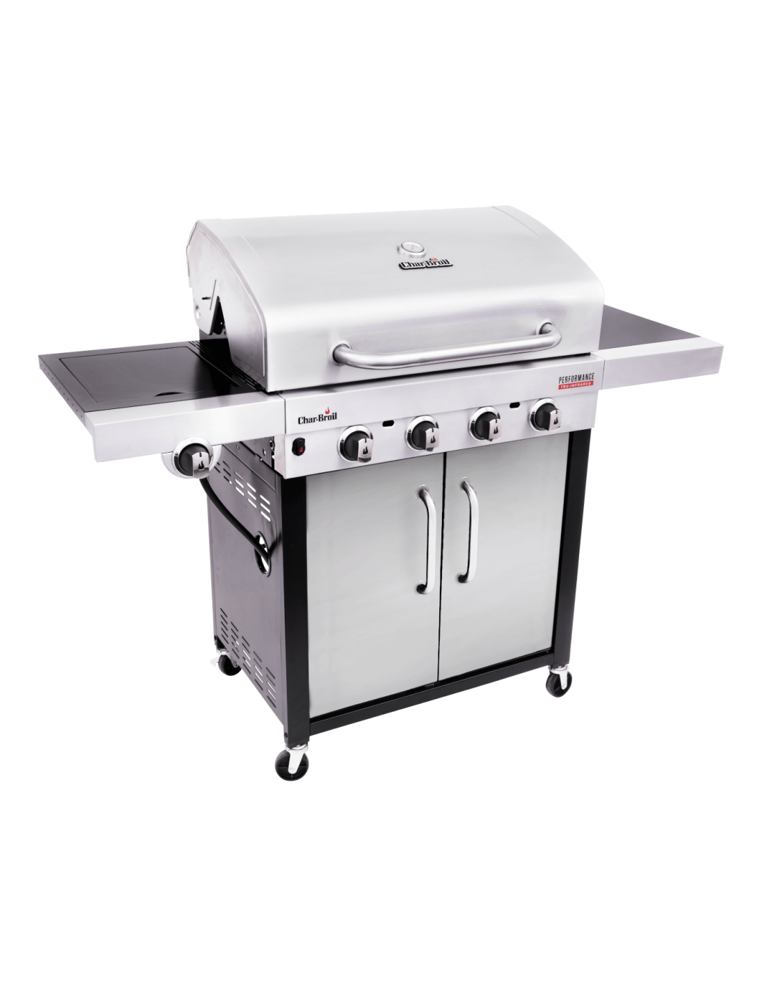 Char-Broil Performance 440 S. Potenza totale: 13400 W, Tipo: Barbecue, Fonte di calore: Gas. Fattore di forma: Zona cottura, Tipo di superficie superiore: Griglia, Colore del prodotto: Nero, Acciaio inox. Numero di ruote: 4 ruota(e), Materiale coperchio: Acciaio inox. Larghezza: 1440 mm, Profondità: 594 mm, Altezza: 1157 mm