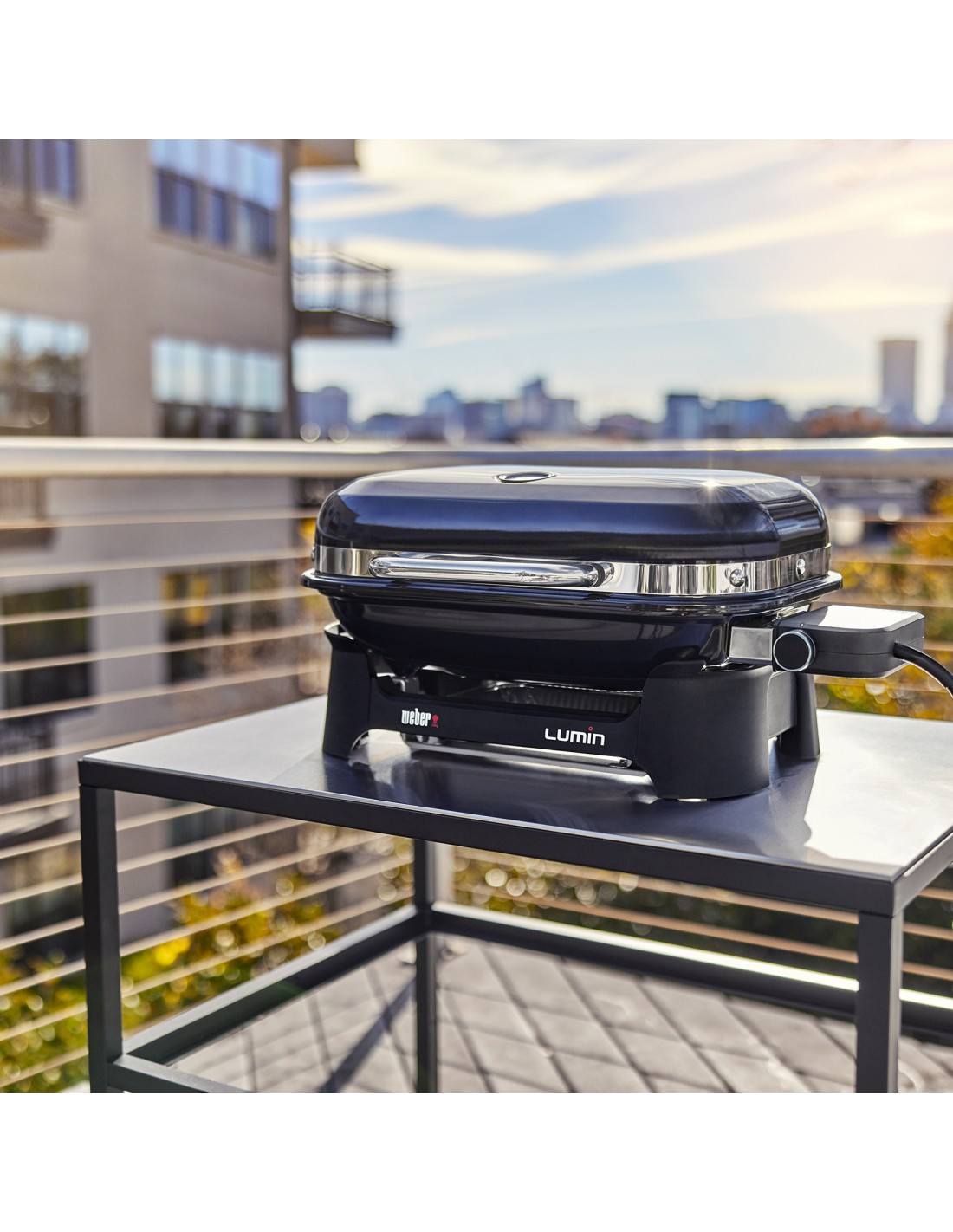 Grazie al calore elevato e alla grande versatilità, il barbecue elettrico Lumin* di Weber porta la cucina all'aperto in città a nuovi livelli. Questo barbecue elettrico multifunzione raggiunge temperature superiori ai 315 °C e consente agli amanti delle striature di ottenere una rosolatura di alta qualità, mentre l'aggiunta dell'affumicatura migliora ulteriormente il sapore che gli ospiti tanto desiderano. Parlando di ospiti soddisfatti, il barbecue elettrico Lumin Compact può tenere in caldo il cibo in modo che tutti possano servirsi da soli (e tornare per servirsi nuovamente). Moderno e pratico, il nuovo barbecue elettrico Lumin Compact di Weber è progettato sia per soddisfare i tuoi gusti che per adattarsi al tuo spazio all'aperto. *LUMIN è un marchio registrato di Weber-Stephen Products LLC ed è un marchio depositato in fase di esame negli Stati Uniti e in altri Paesi.