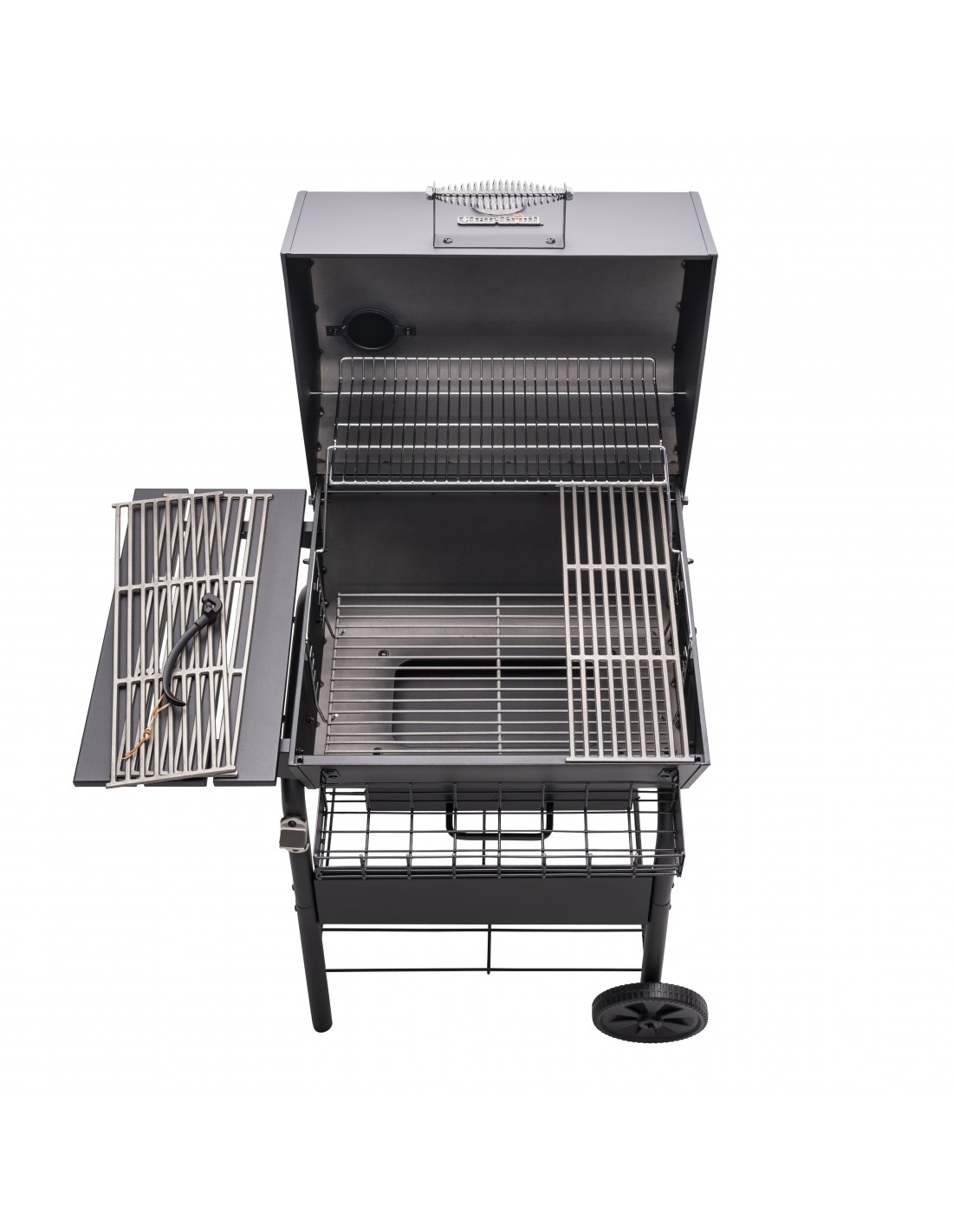 Char-Broil 140252. Fonte di calore: Carbone + legna da ardere, Numero totale di fuochi: 1 Fornello(i), Dimensione della superficie della griglia: 530 x 495 mm. Materiale della scocca: Acciaio, Dimensioni della griglia (LxP): 530 x 495 mm, Materiale superficie di cottura: Ghisa. Larghezza: 940 mm, Profondità: 691 mm, Altezza: 1309 mm