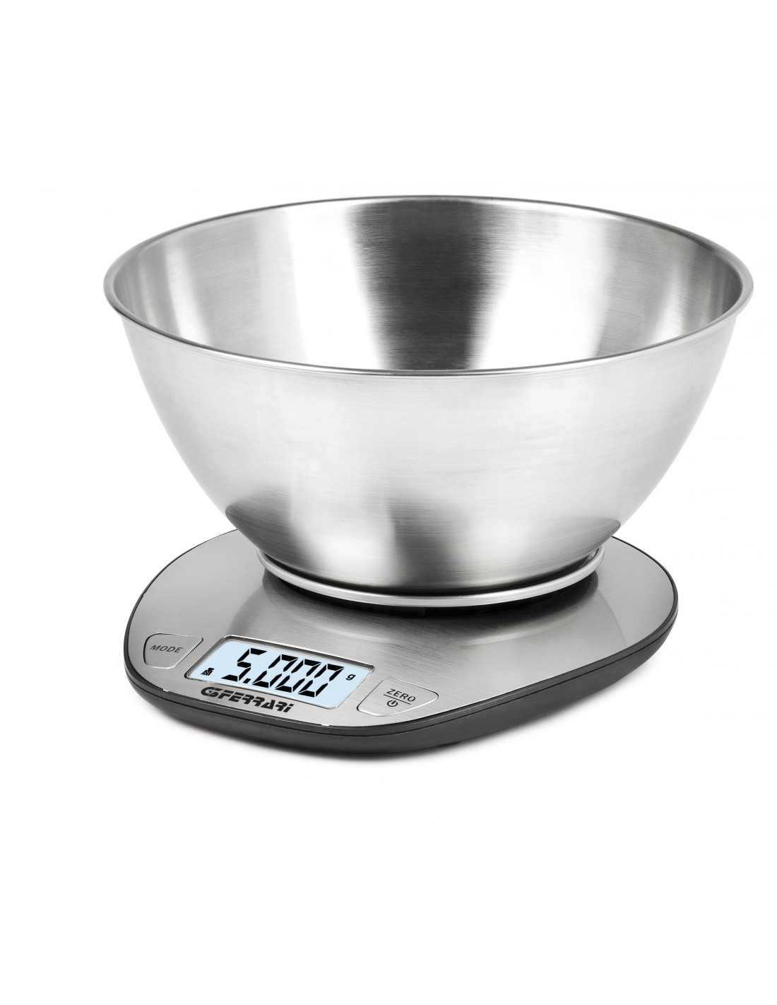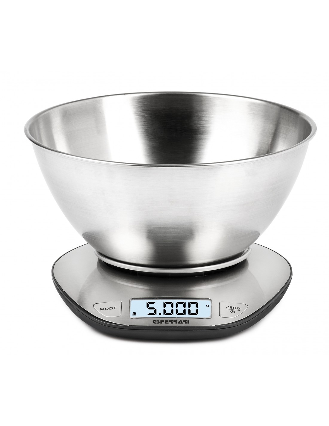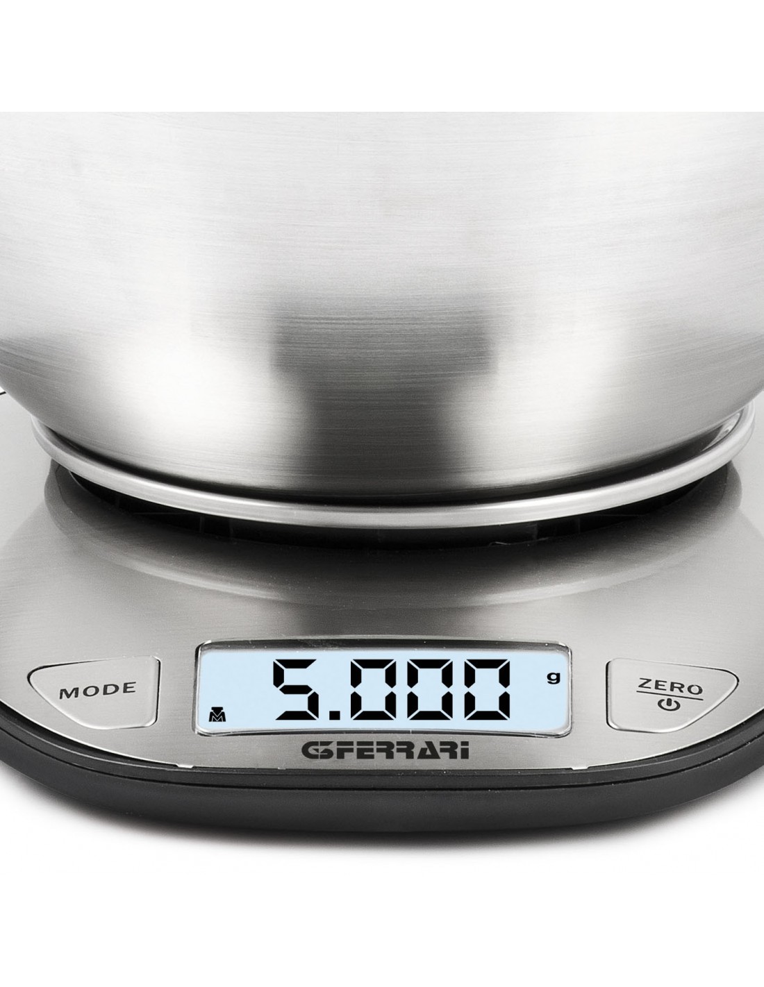 G3 Ferrari G20062. Tipo: Bilancia da cucina elettronica, Peso massimo (capacità): 5 kg, Precisione: 1 g. Tipo di display: LCD, Dimensioni schermo: 58 x 27 mm. Tipo batteria: Mini Stilo AAA, Voltaggio della batteria: 1,5 V. Larghezza: 180 mm, Profondità: 195 mm, Altezza: 130 mm. Quantità di cartone da spedizione: 12 pz