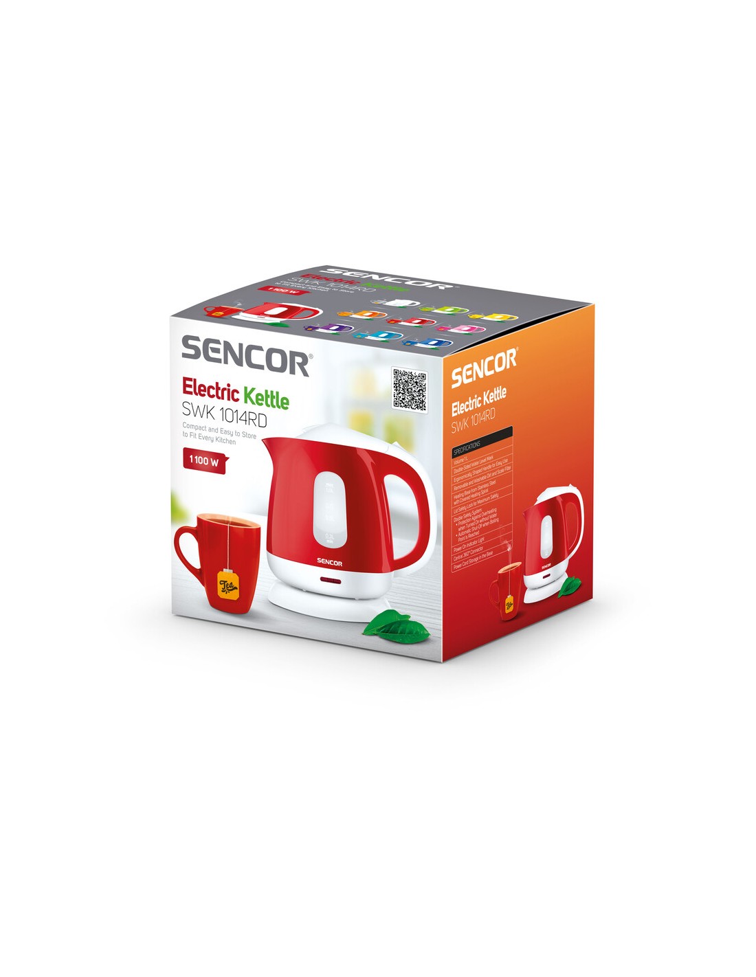 Sencor SWK 1014RD. Capacità tanica acqua: 1 L. Potenza: 1100 W. Colore del prodotto: Rosso, Materiale della scocca: Plastica, Acciaio inox, Indicatore del livello dell'acqua, Arresto di sicurezza contro il surriscaldamento, Filtro