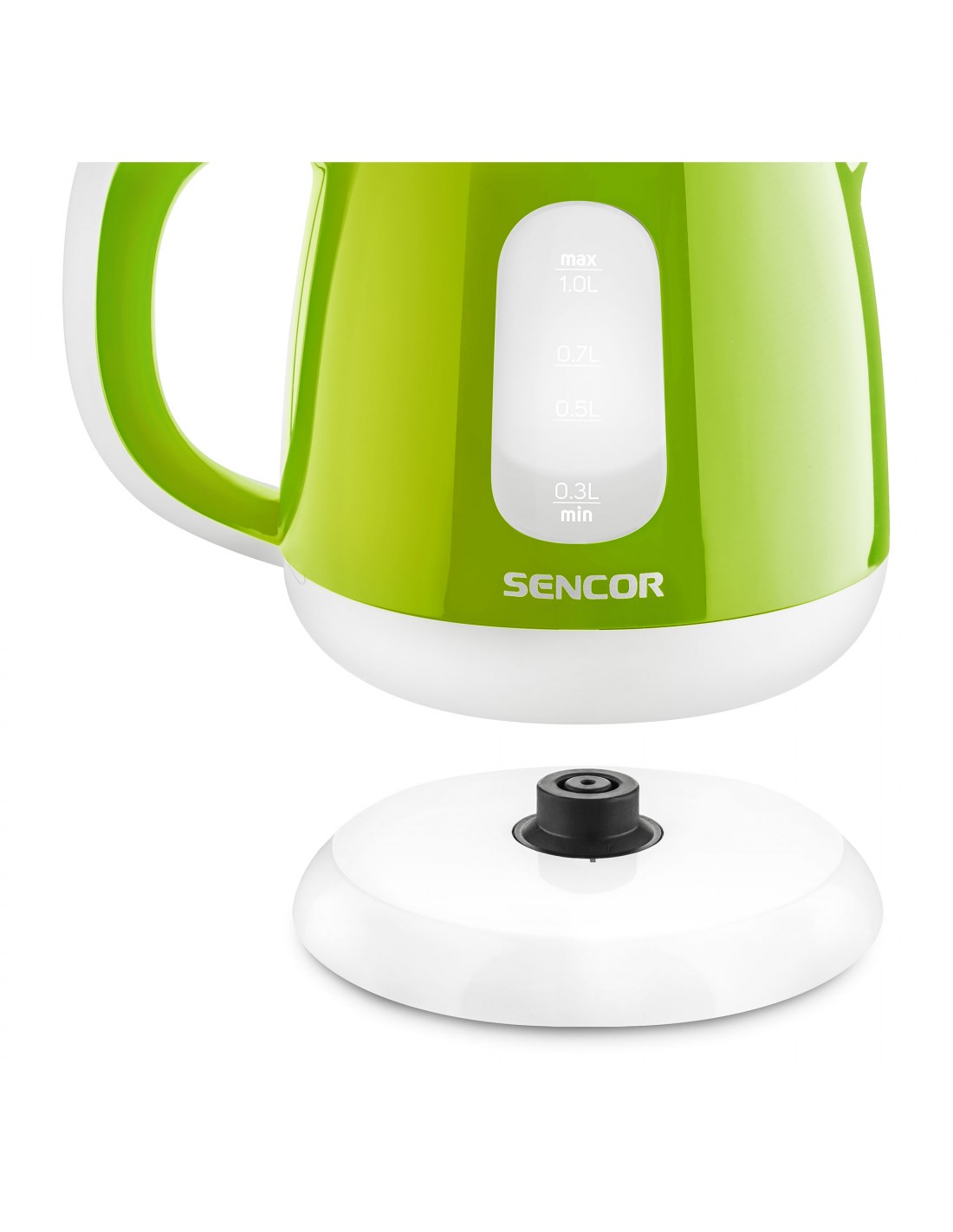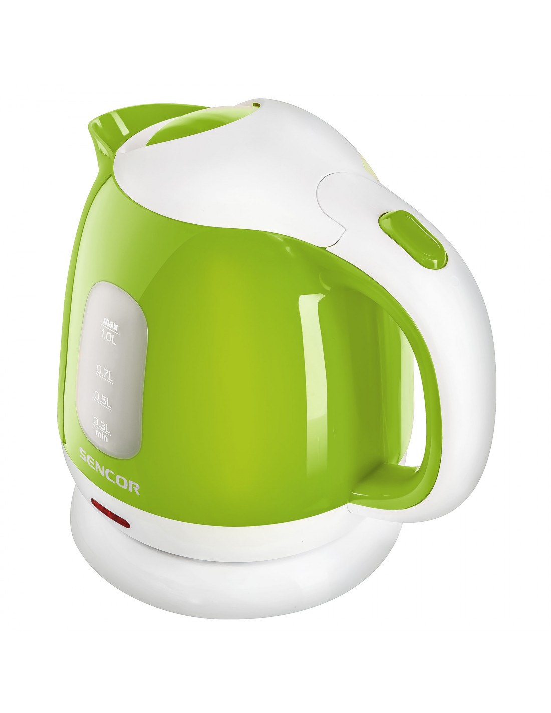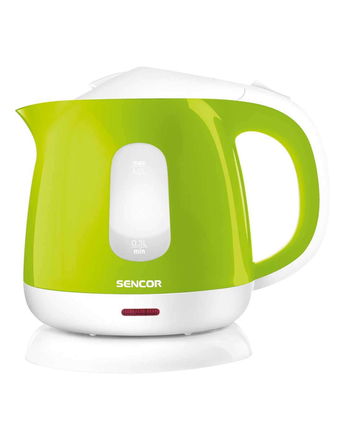 Sencor SWK 1011GR. Capacità tanica acqua: 1 L. Potenza: 1100 W. Colore del prodotto: Verde, Materiale della scocca: Plastica, Acciaio inox, Termostato regolabile, Indicatore del livello dell'acqua, Arresto di sicurezza contro il surriscaldamento. Senza filo. Filtro