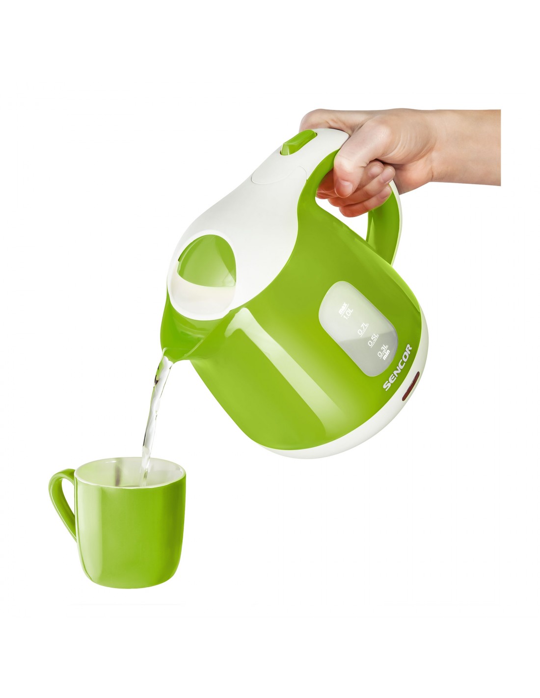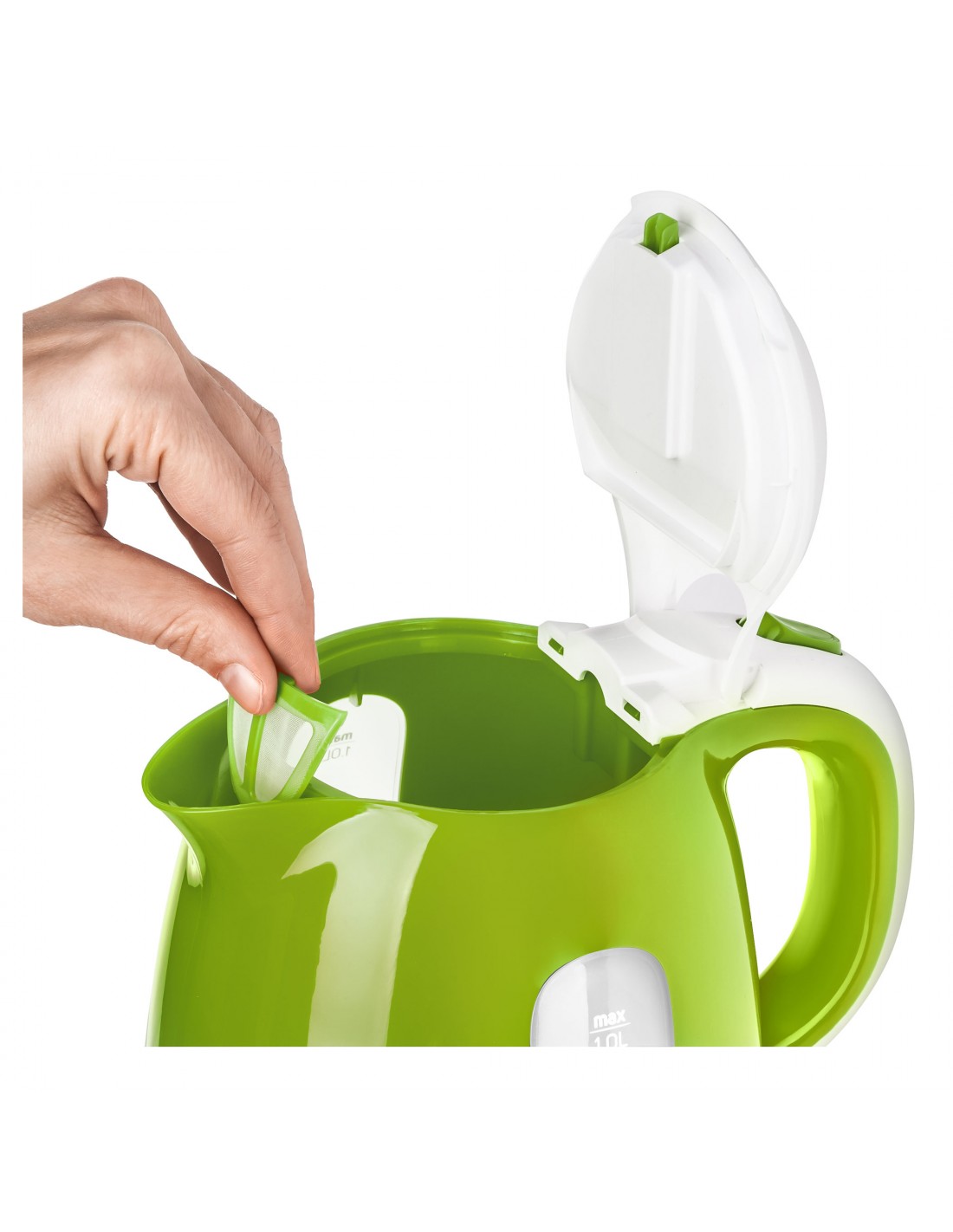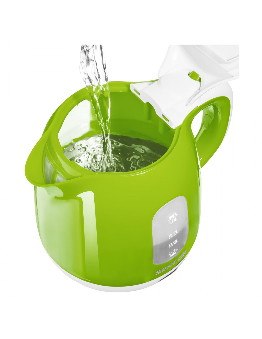 Sencor SWK 1011GR. Capacità tanica acqua: 1 L. Potenza: 1100 W. Colore del prodotto: Verde, Materiale della scocca: Plastica, Acciaio inox, Termostato regolabile, Indicatore del livello dell'acqua, Arresto di sicurezza contro il surriscaldamento. Senza filo. Filtro
