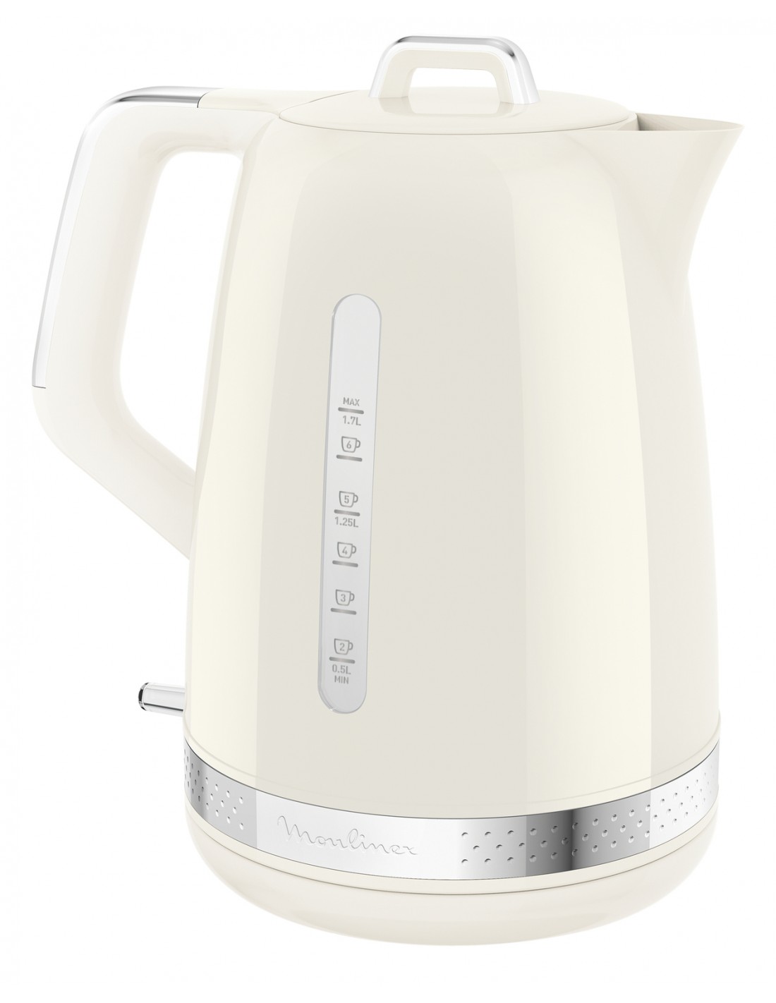 Esprimi il tuo stile con una gamma da cucina che completerà il piano di lavoro. Le linee essenziali e il design innovativo del bollitore Soleil illumineranno la tua cucina. Con una grande capacità di 1,7 L per un massimo di 7 tazze e una potenza di 2400 W, è perfetto per condividere dei momenti con la famiglia e gli amici. L'elemento riscaldante interno facilita la pulizia, mentre il funzionale coperchio a cerniera rende più semplice il riempimento e la pulizia. Questo splendido bollitore è inoltre dotato di un doppio indicatore del livello dell'acqua per un monitoraggio chiaro e semplice da ogni angolazione, di un filtro anticalcare amovibile per un'acqua più pulita e bevande ancora più deliziose e di un beccuccio di precisione per una corretta erogazione. Il tutto è completato da un interruttore On/Off luminoso con spegnimento automatico, per un uso pratico e da una base girevole a 360 gradi che lo terrà saldamente in posizione. Con Moulinex Soleil potrai avere stile anche in cucina!