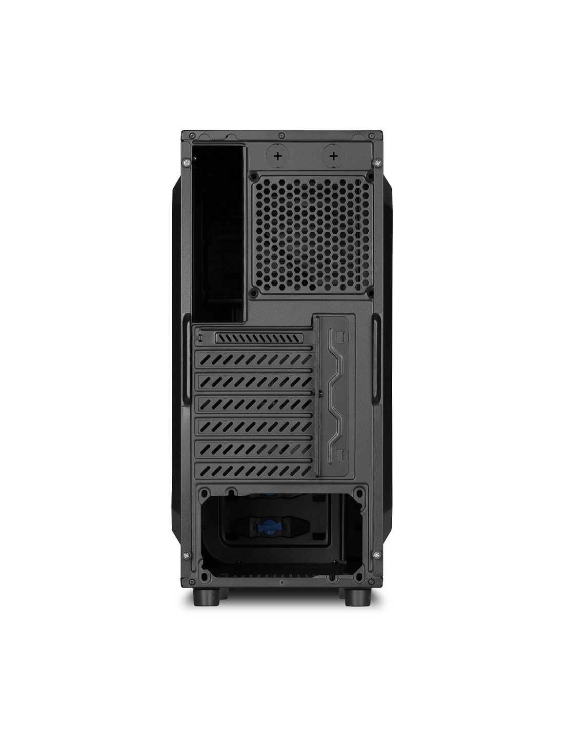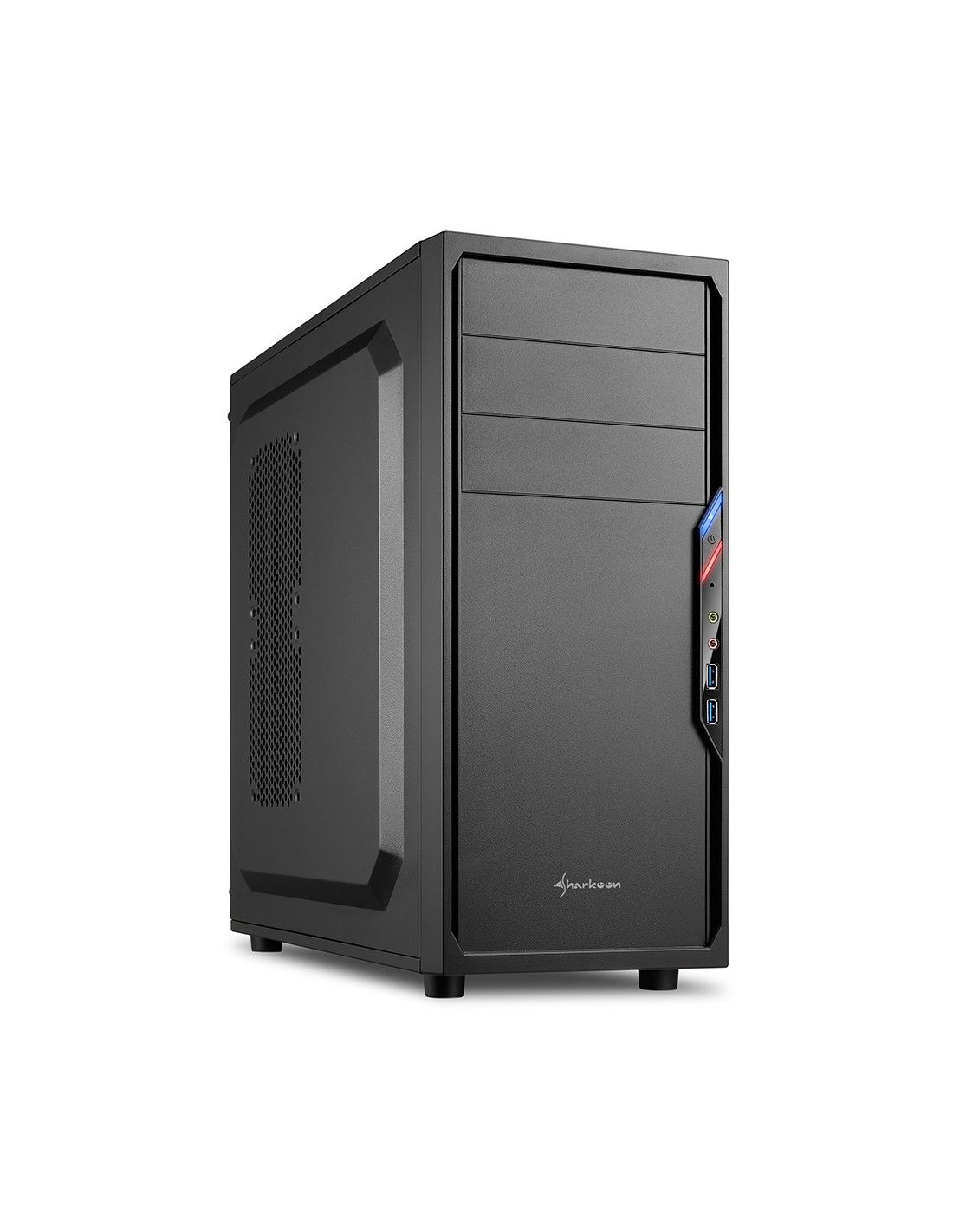Sharkoon VS4-V. Fattore di forma: Midi-Tower, Tipo: PC, Colore del prodotto: Nero. Ventole anteriori installate: 1x 120 mm, Diametro delle ventole frontali supportato: 120 mm, Diametro delle ventole laterali supportato: 120 mm. Dimensioni di hard disk drive supportati: 2.5,3.5". Larghezza: 200 mm, Profondità: 445 mm, Altezza: 430 mm. Larghezza imballo: 225 mm, Profondità imballo: 466 mm, Altezza imballo: 500 mm