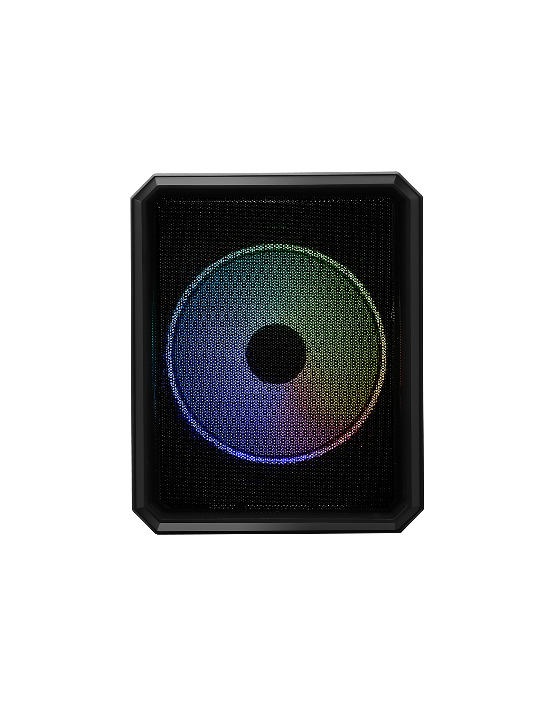 Il frontale “mesh” ospita una ventola da ben 200mm ARGB e nel retro ne troviamo una, sem-pre ARGB da 120mm, entrambe gestite dal comodo controller con telecomando a radio frequenza. Se non bastasse, è anche possibile installare un raffreddamento a liquido con radiatore fino a 240mm grazie l’apposito bracket in dotazione.