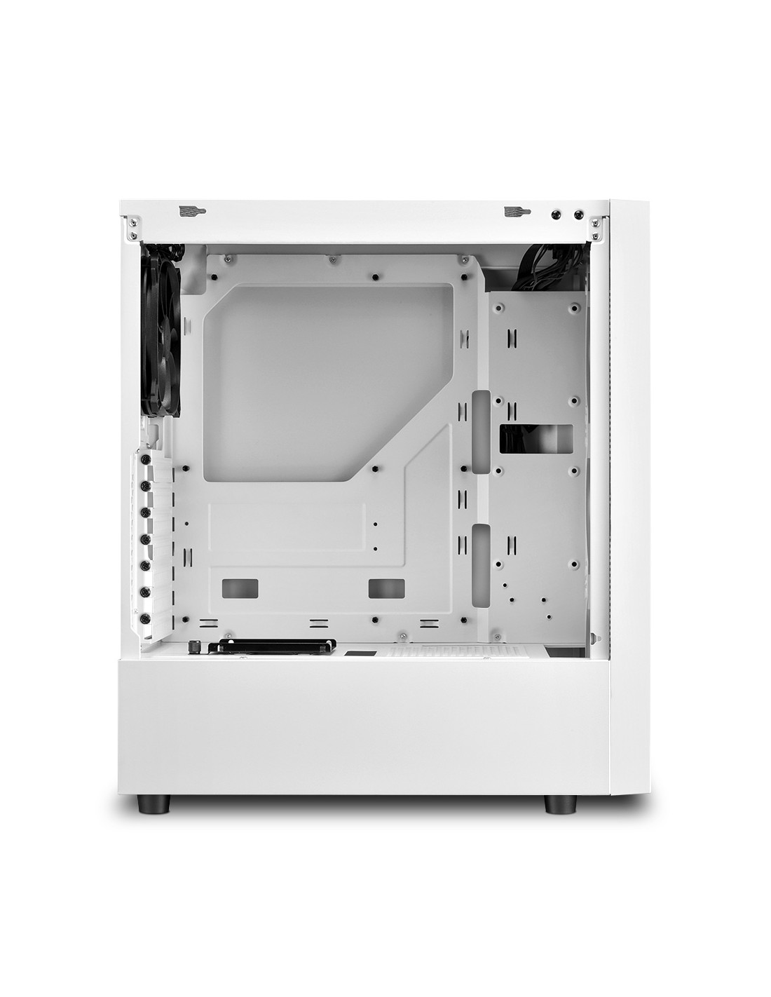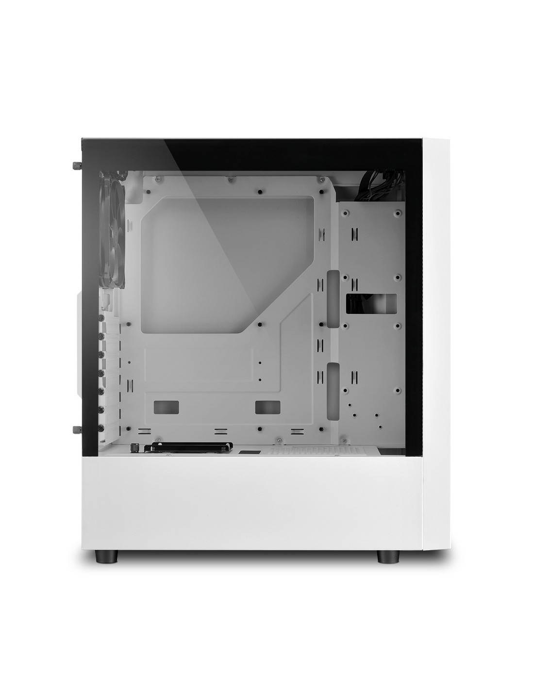 Sharkoon RGB Slider. Fattore di forma: Midi Tower, Tipo: PC, Colore del prodotto: Bianco. Diametro delle ventole frontali supportato: 120 mm, Rear fans installed: 1x 120 mm, Diametro delle ventole posteriori supportato: 120 mm. Dimensioni di hard disk drive supportati: 2.5,3.5". Larghezza: 190 mm, Profondità: 400 mm, Altezza: 456 mm