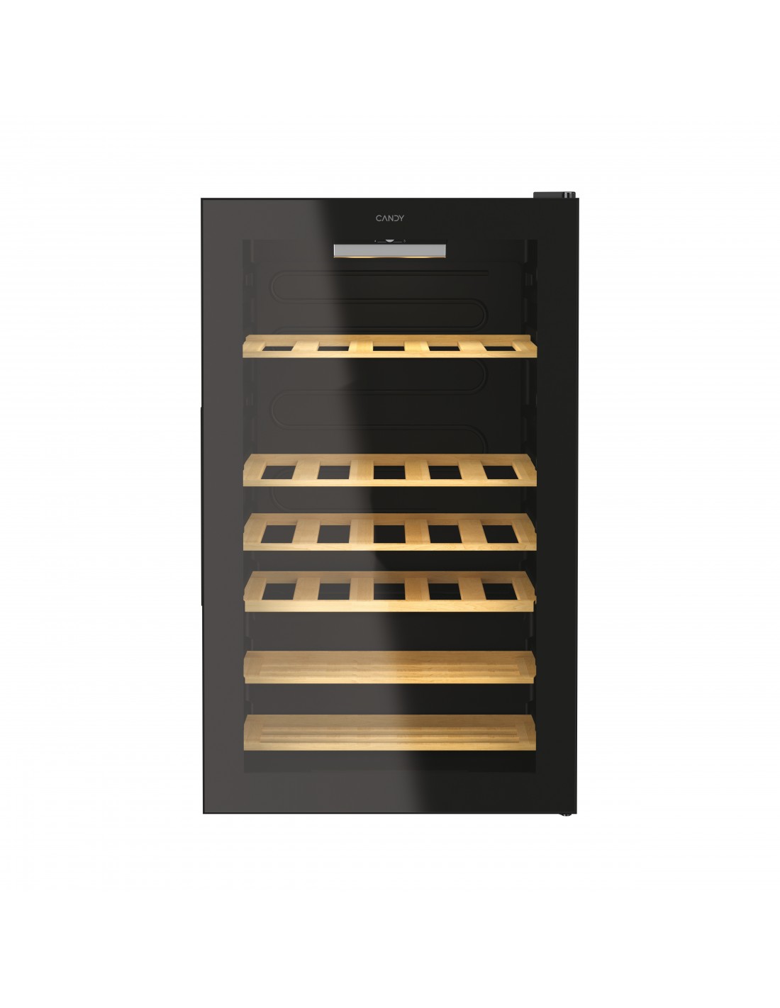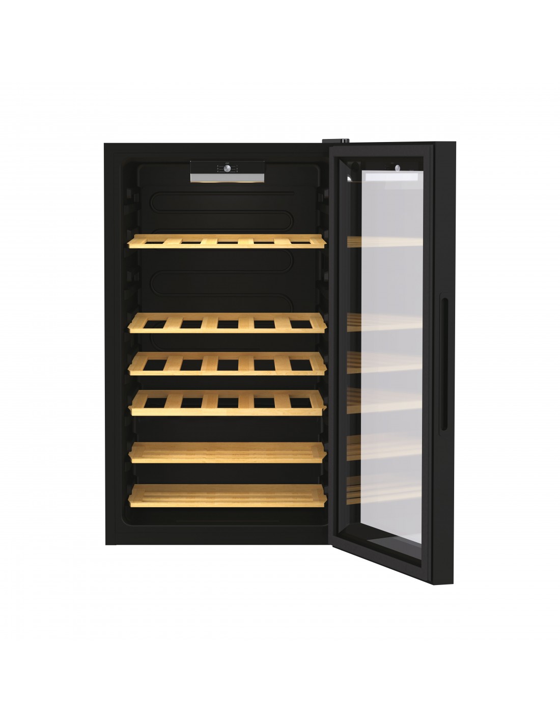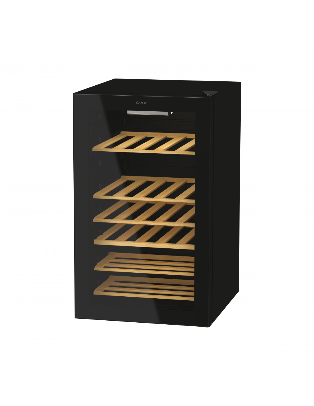 Candy DiVino CWC 150 MHF. Posizionamento dell'apparecchio: Libera installazione, Colore struttura: Nero, Colore interno: Nero. Capacità bottiglie: 41 bottiglia/bottiglie, Tipo di prodotto: Cantinetta vino con compressore, Classe climatica: N-ST. Tipo di lampada: LED, Applicazioni per il controllo supportate: hOn. Classe efficienza energetica: C, Consumo energetico annuo: 143 kWh, Scala di efficienza energetica: Da A a G. Larghezza: 490 mm, Profondità: 545 mm, Altezza: 845 mm