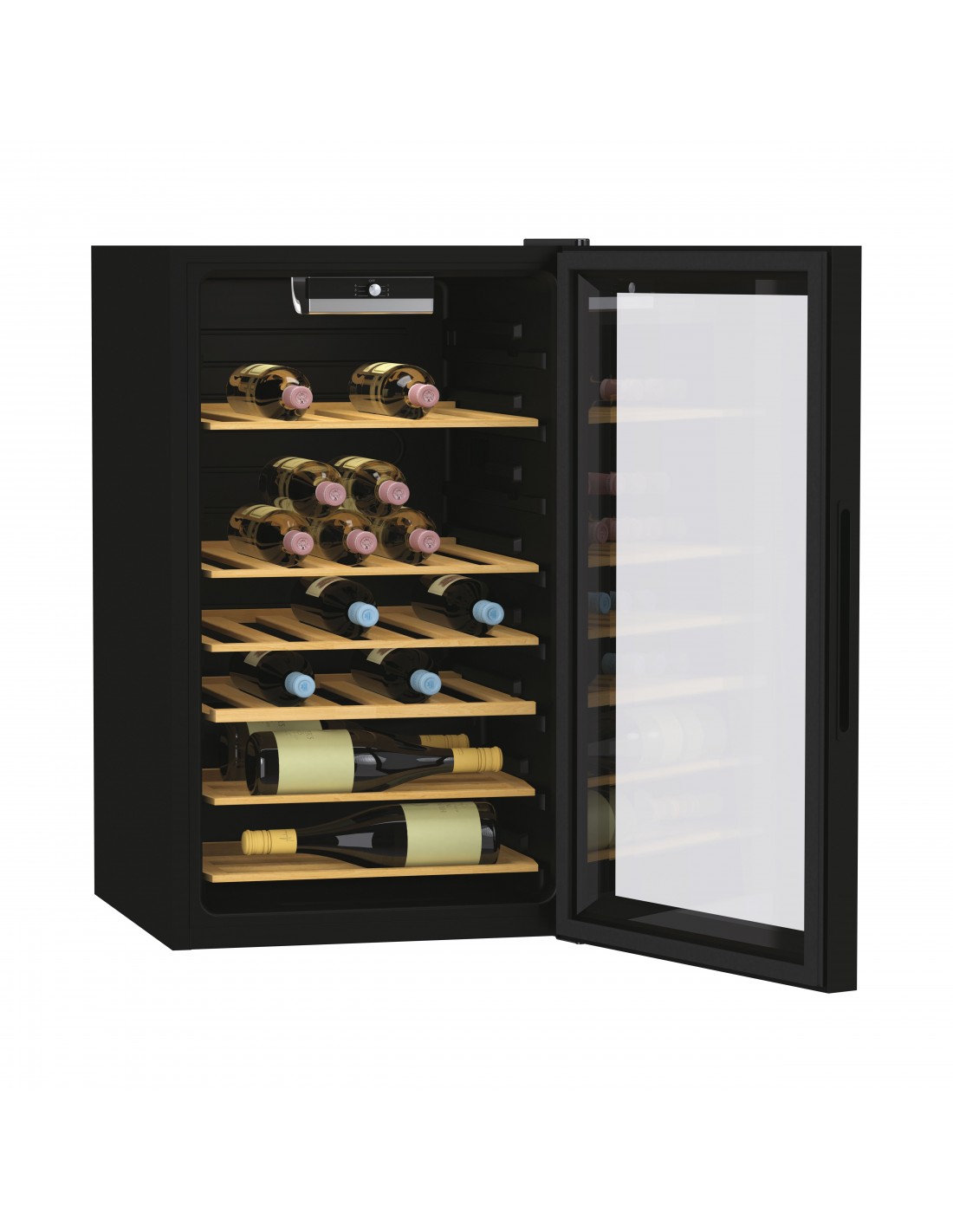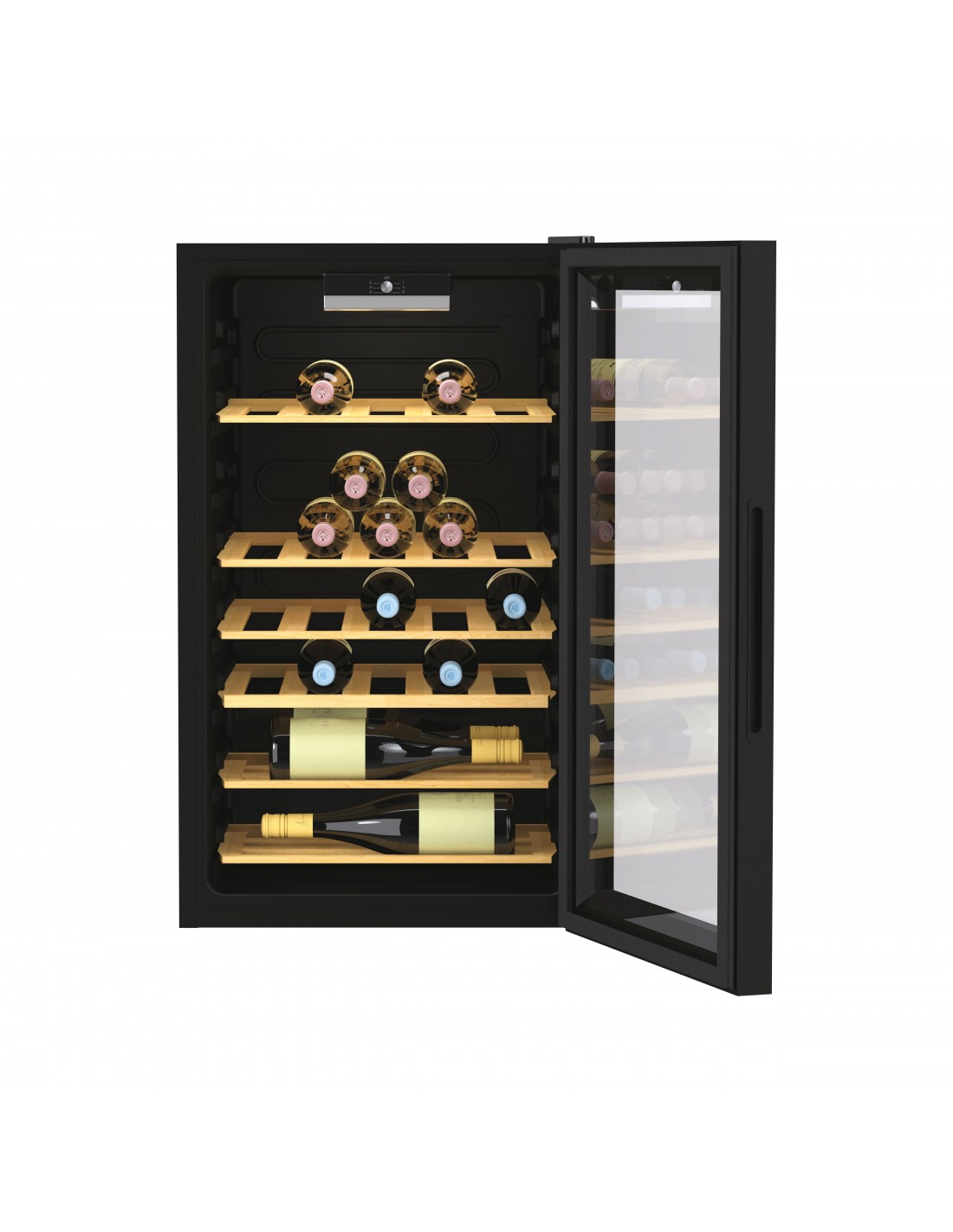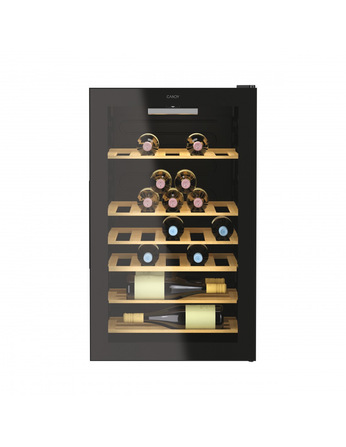 Candy DiVino CWC 150 MHF. Posizionamento dell'apparecchio: Libera installazione, Colore struttura: Nero, Colore interno: Nero. Capacità bottiglie: 41 bottiglia/bottiglie, Tipo di prodotto: Cantinetta vino con compressore, Classe climatica: N-ST. Tipo di lampada: LED, Applicazioni per il controllo supportate: hOn. Classe efficienza energetica: C, Consumo energetico annuo: 143 kWh, Scala di efficienza energetica: Da A a G. Larghezza: 490 mm, Profondità: 545 mm, Altezza: 845 mm