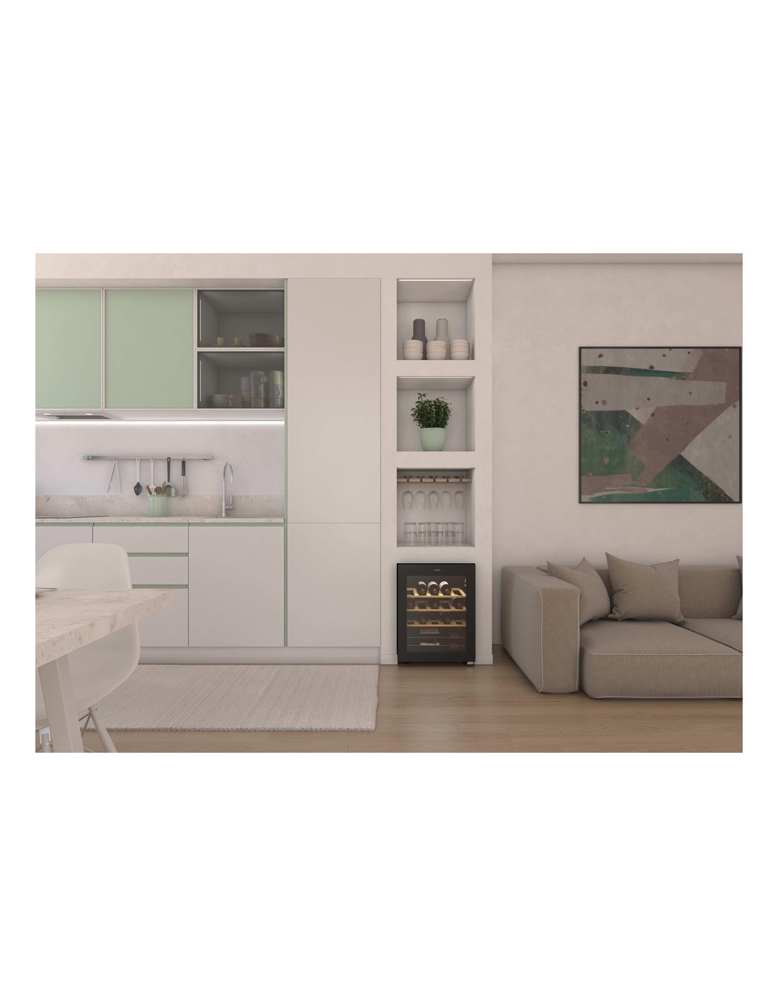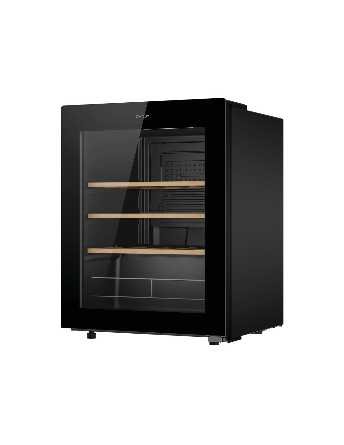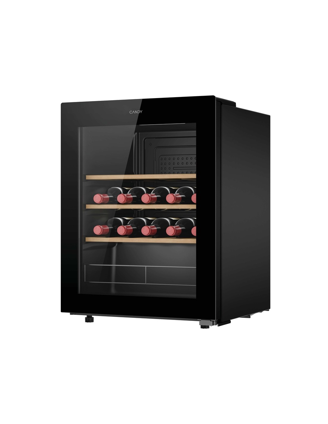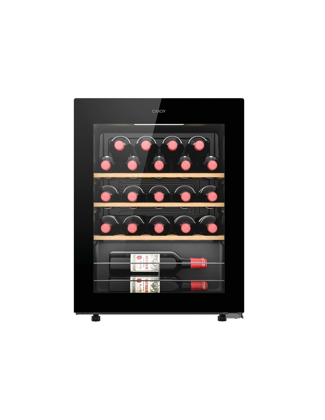 Candy DiVino CWC023. Posizionamento dell'apparecchio: Libera installazione, Colore struttura: Nero, Colore interno: Nero. Capacità bottiglie: 23 bottiglia/bottiglie, Intervallo temperatura (zona 1): 5 - 20 °C, Classe climatica: N-ST. Tipo di controllo: Touch, Tipo di lampada: LED, Applicazioni per il controllo supportate: hOn. Classe efficienza energetica: G, Consumo energetico annuo: 136 kWh, Scala di efficienza energetica: Da A a G. Larghezza: 475 mm, Profondità: 456 mm, Altezza: 630 mm