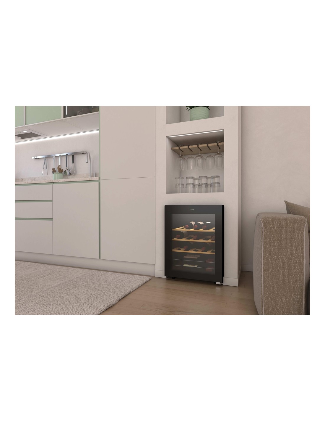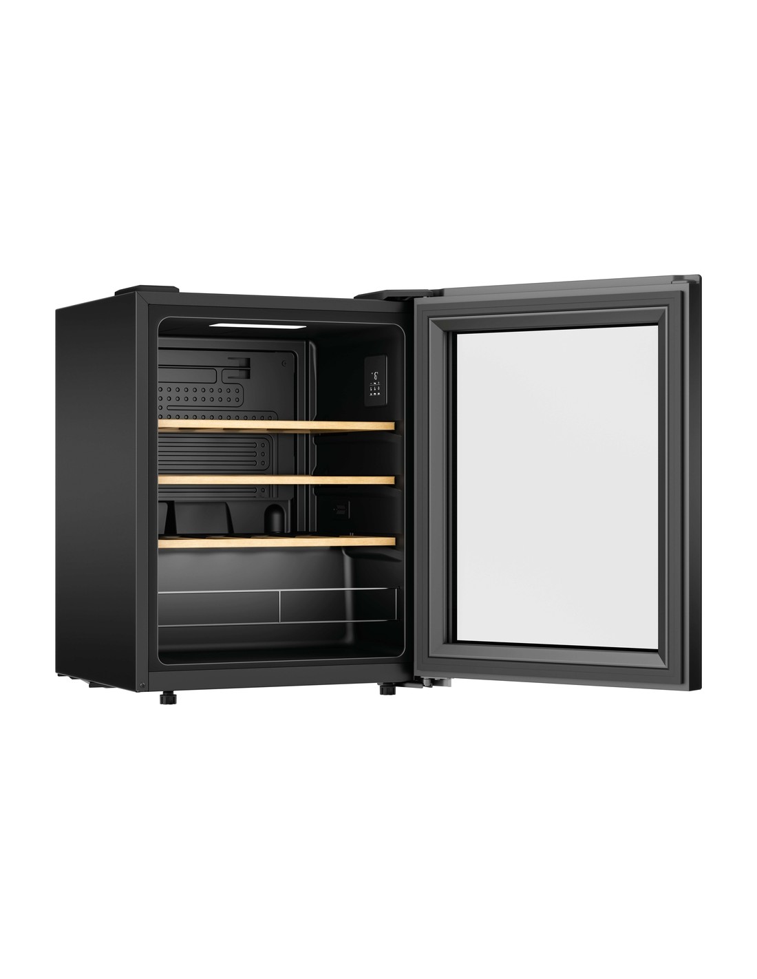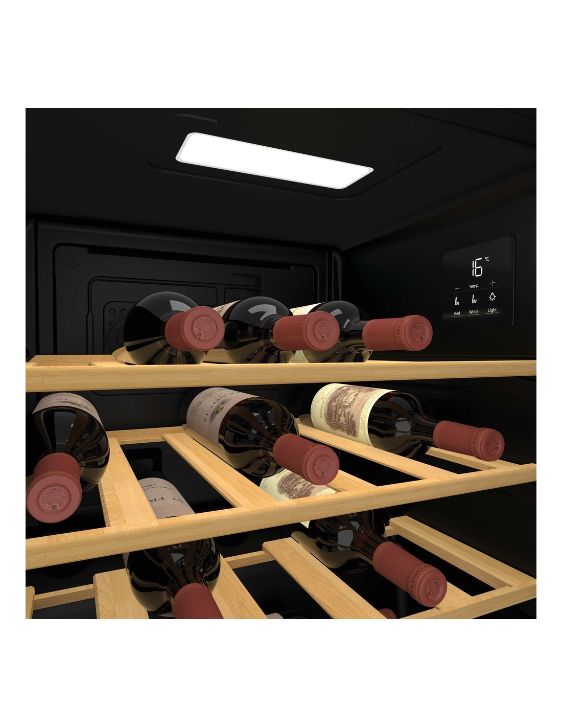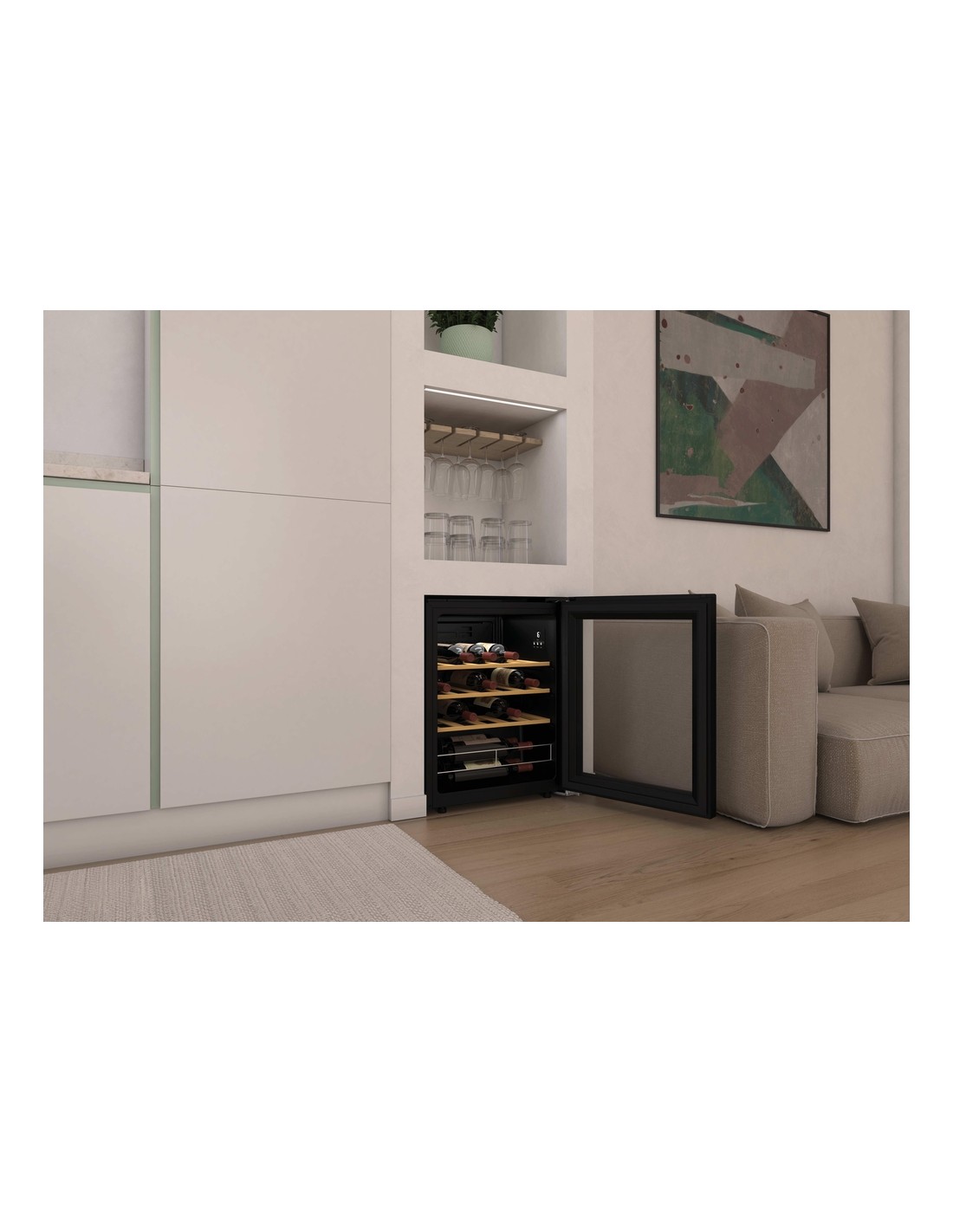 Candy DiVino CWC023. Posizionamento dell'apparecchio: Libera installazione, Colore struttura: Nero, Colore interno: Nero. Capacità bottiglie: 23 bottiglia/bottiglie, Intervallo temperatura (zona 1): 5 - 20 °C, Classe climatica: N-ST. Tipo di controllo: Touch, Tipo di lampada: LED, Applicazioni per il controllo supportate: hOn. Classe efficienza energetica: G, Consumo energetico annuo: 136 kWh, Scala di efficienza energetica: Da A a G. Larghezza: 475 mm, Profondità: 456 mm, Altezza: 630 mm