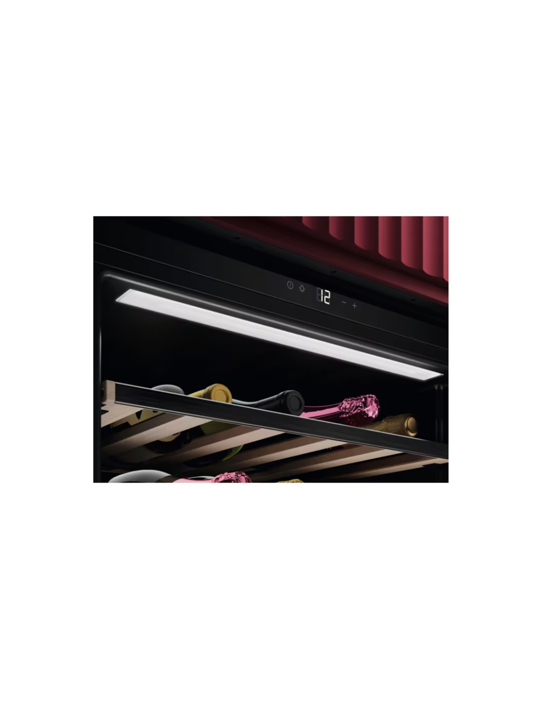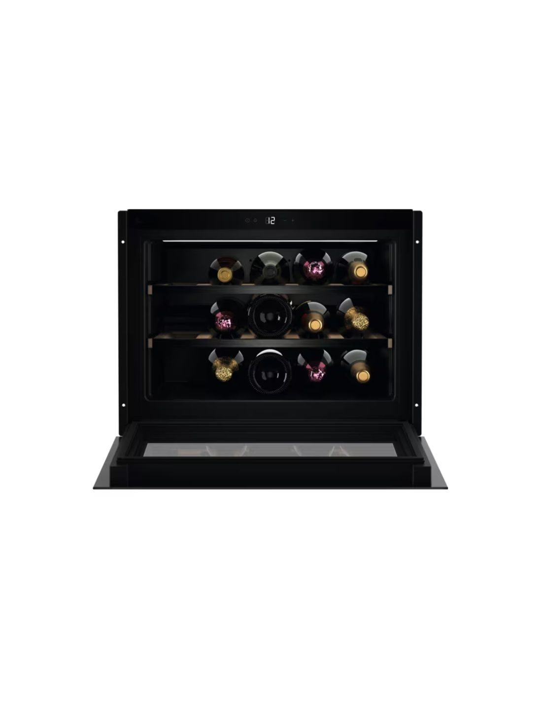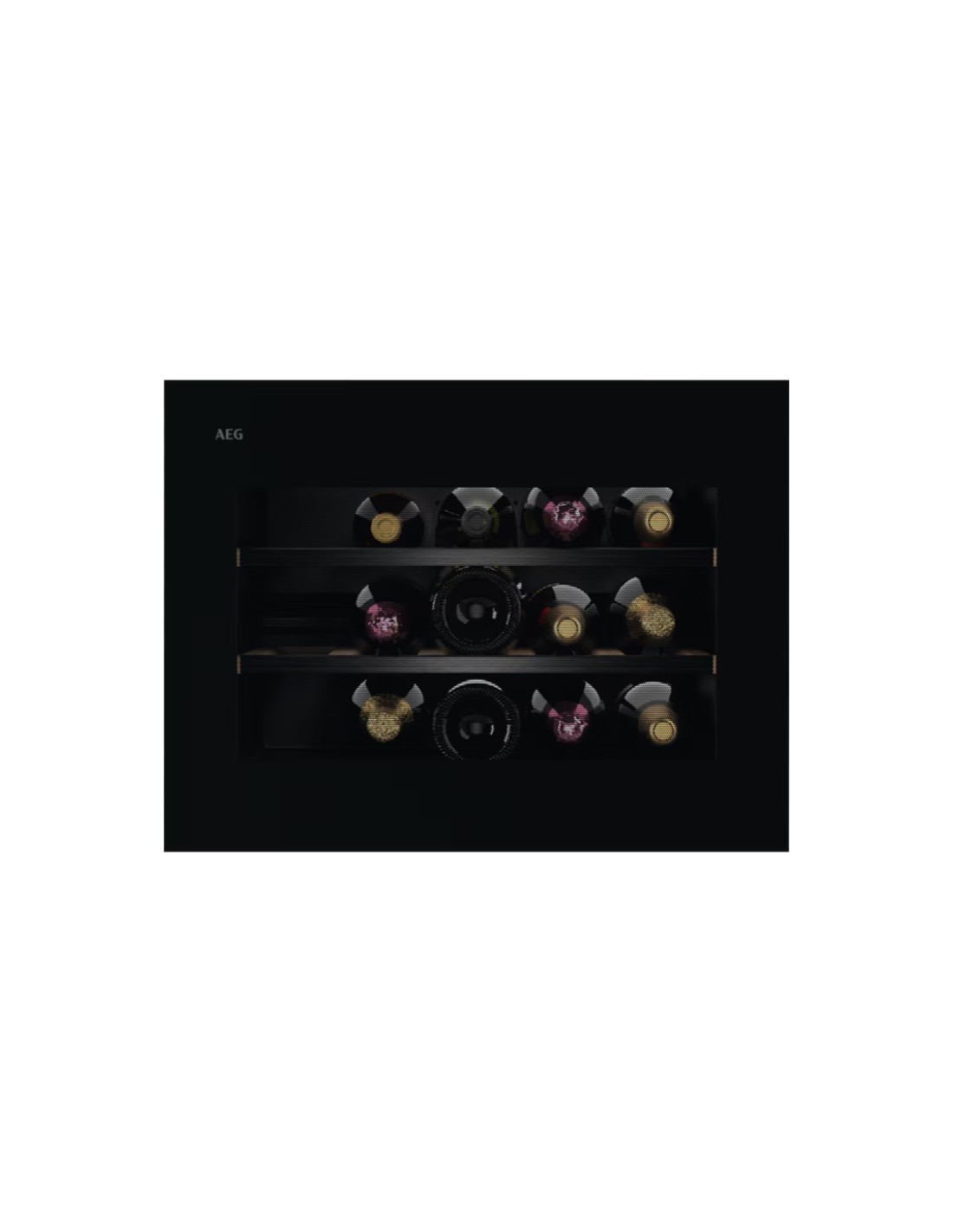 AEG NKW8P21KAB. Posizionamento dell'apparecchio: Da incasso, Colore struttura: Nero, Colore interno: Nero. Capacità bottiglie: 15 bottiglia/bottiglie, Tipo di prodotto: Cantinetta vino con compressore, Classe climatica: N-ST. Tipo di controllo: Touch, Tipo di display: LED, Lunghezza cavo: 1,8 m. Classe efficienza energetica: F, Consumo energetico annuo: 100 kWh, Scala di efficienza energetica: Da A a G. Larghezza: 554 mm, Profondità: 560 mm, Altezza: 440 mm