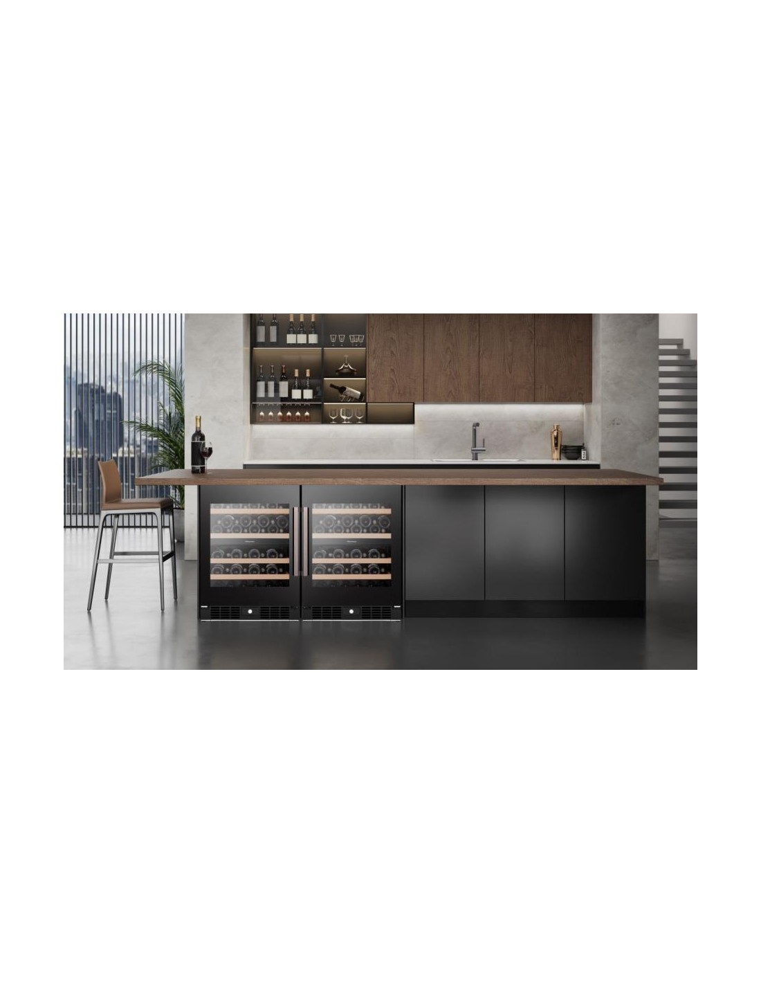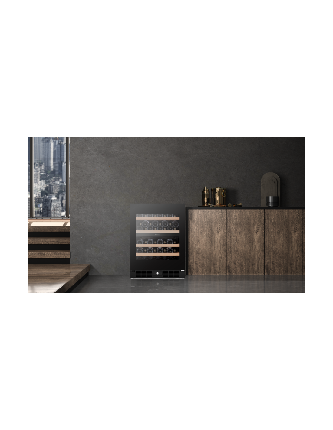 Hisense RW3N122GALF. Posizionamento dell'apparecchio: Da incasso, Colore struttura: Nero, Colore interno: Nero. Capacità bottiglie: 46 bottiglia/bottiglie, Tipo di prodotto: Cantinetta vino con compressore, Intervallo temperatura (zona 1): 5 - 20 °C. Tipo di controllo: Telecomando, Touch, Tipo di display: LED. Classe efficienza energetica: F, Consumo energetico annuo: 105 kWh, Scala di efficienza energetica: Da A a G. Larghezza: 595 mm, Profondità: 575 mm, Altezza: 819 mm