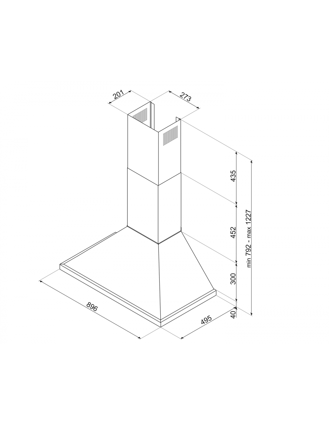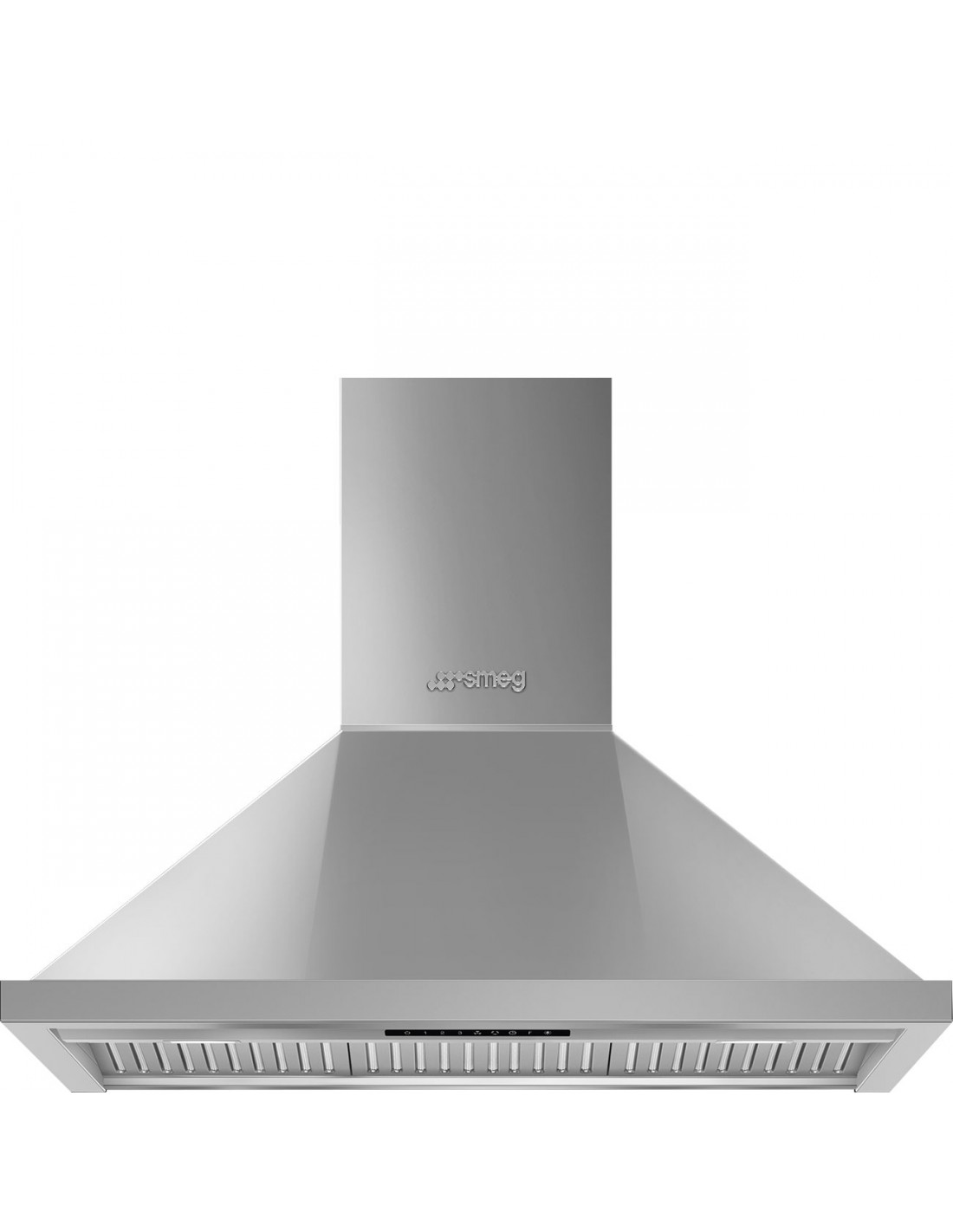 Smeg KPF94X. Potenza massima di estrazione: 630 m³/h, Tipo di estrazione: Aspirante/Filtrante, Classe di efficienza dinamica del fluido: A. Tipo: Cappa aspirante a parete, Colore del prodotto: Acciaio inox, Tipo di controllo: Touch. Tipo di filtro antigrasso: Acciaio inox, Numero di filtri: 3 pz. Potenza lampadina: 2 W, Numero di lampadine: 2 lampadina(e), Tipo di lampada: LED. Classe efficienza energetica: A+, Consumo energetico annuo: 40 kWh, Carico di collegamento: 277 W