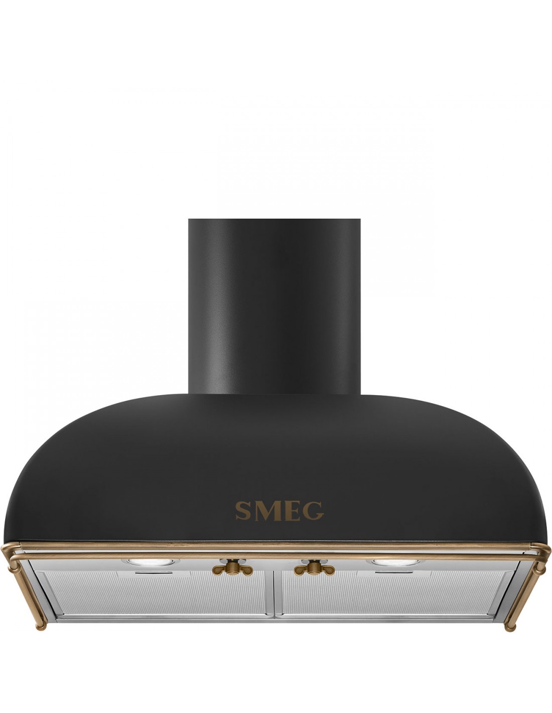 Smeg Coloniale Cappa KS59AOE2 Antracite. Potenza massima di estrazione: 522 m³/h, Classe di efficienza dinamica del fluido: A, Classe di efficienza luminosa: A. Tipo: Cappa aspirante a parete, Colore del prodotto: Antracite, Ottone, Acciaio inox, Tipo di controllo: Manopola. Tipo di filtro antigrasso: Acciaio inox, Numero di filtri: 2 pz. Potenza lampadina: 1 W, Numero di lampadine: 2 lampadina(e), Tipo di lampada: LED. Classe efficienza energetica: A, Consumo energetico annuo: 58 kWh, Scala di efficienza energetica: Da A+++ a D