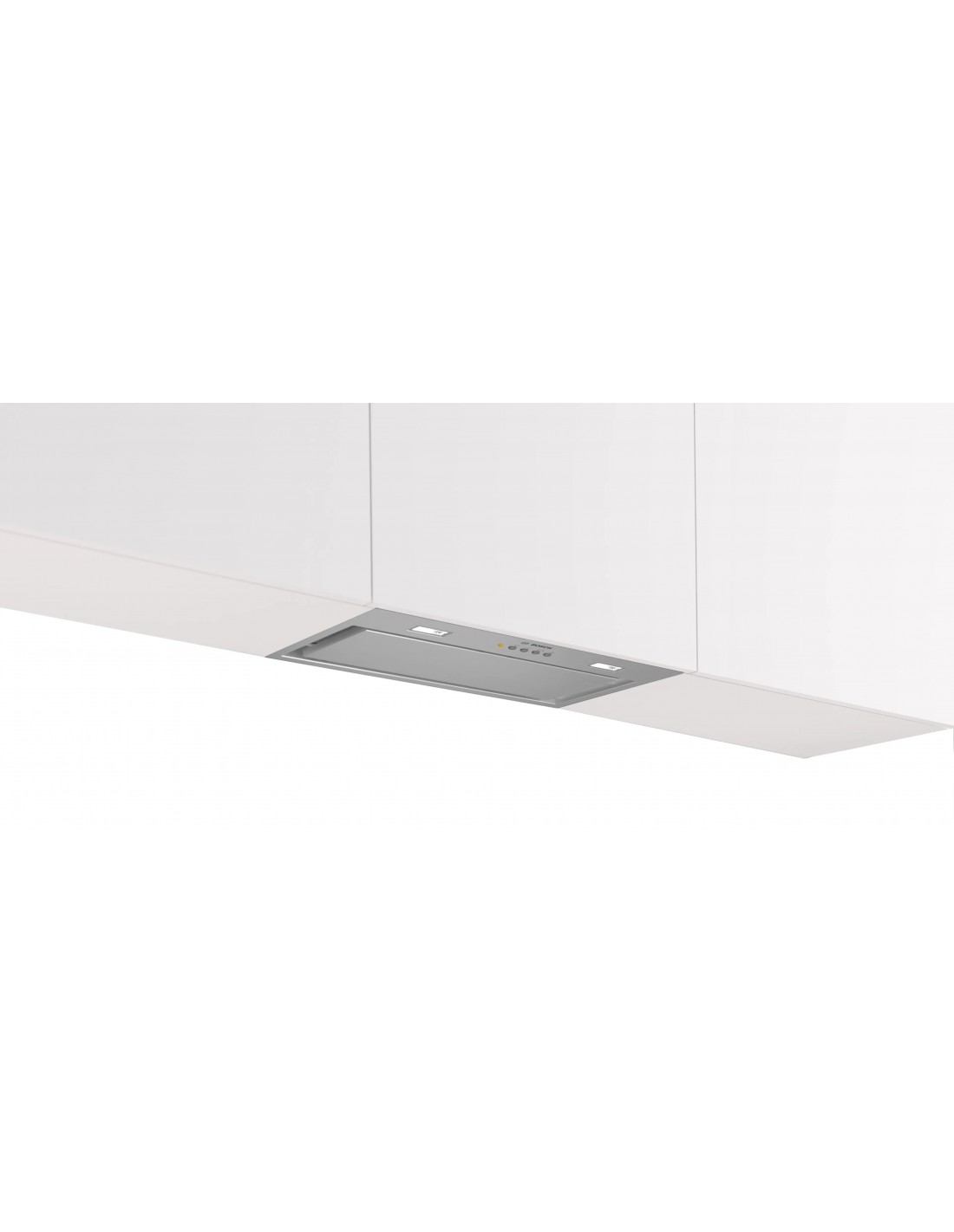 Bosch Serie 6 DLN56AC50. Potenza massima di estrazione: 570 m³/h, Tipo di estrazione: Aspirante/Filtrante, Classe di efficienza dinamica del fluido: C. Tipo: Integrato, Colore del prodotto: Acciaio inox, Tipo di controllo: Pulsanti. Tipo di filtro antigrasso: Alluminio. Numero di lampadine: 2 lampadina(e), Tipo di Lampadina: LED, Illuminamento: 400 lx. Classe efficienza energetica: B, Consumo energetico annuo: 75 kWh, Scala di efficienza energetica: Da A+++ a D